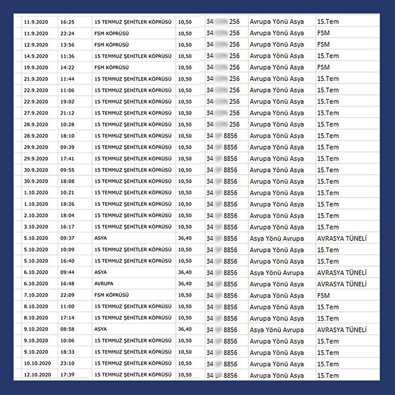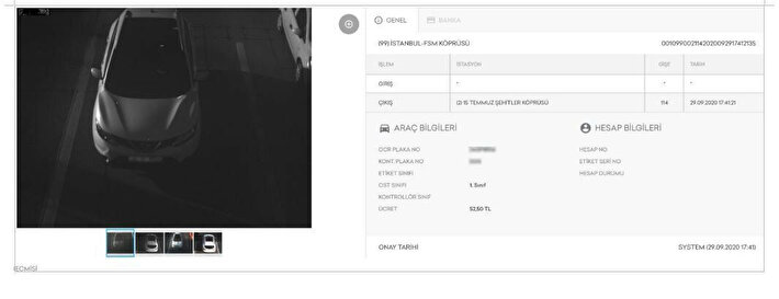 Yapılan araştırmada her iki HGS etiket bilgisinin kiralama şirketine ait olduğu da görülürken, ilgili köprü geçişlerinin HGS sisteminde kayıtları olduğu ve fotoğraflar ile birlikte geçişler incelendiğinde ücretlendirmenin sadece Avrupa Yakasından - Anadolu Yakasına yapılan geçişlerde olduğunun görüldüğü, bahse konu araçlarda bazı günlerde aynı gün içinde iki kere Avrupa-Anadolu geçişi yapıldığının tespit edildiği de belirtildi.