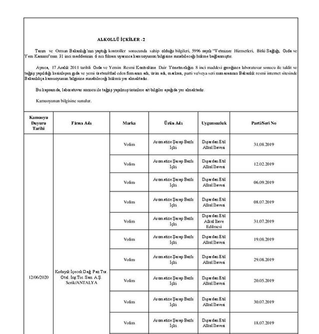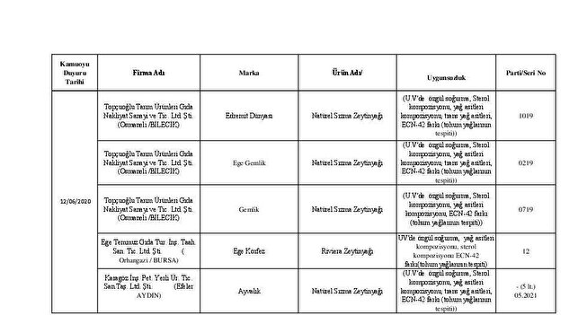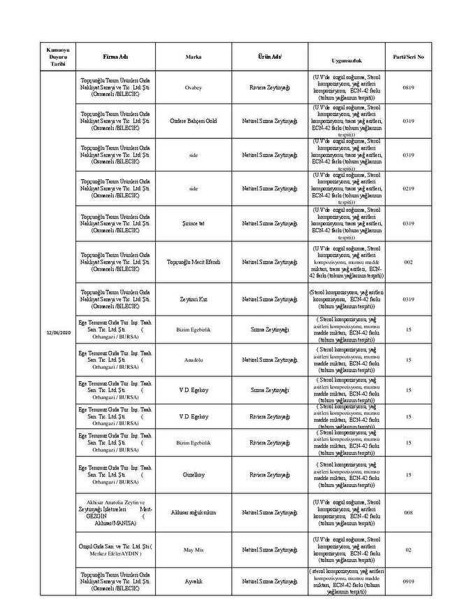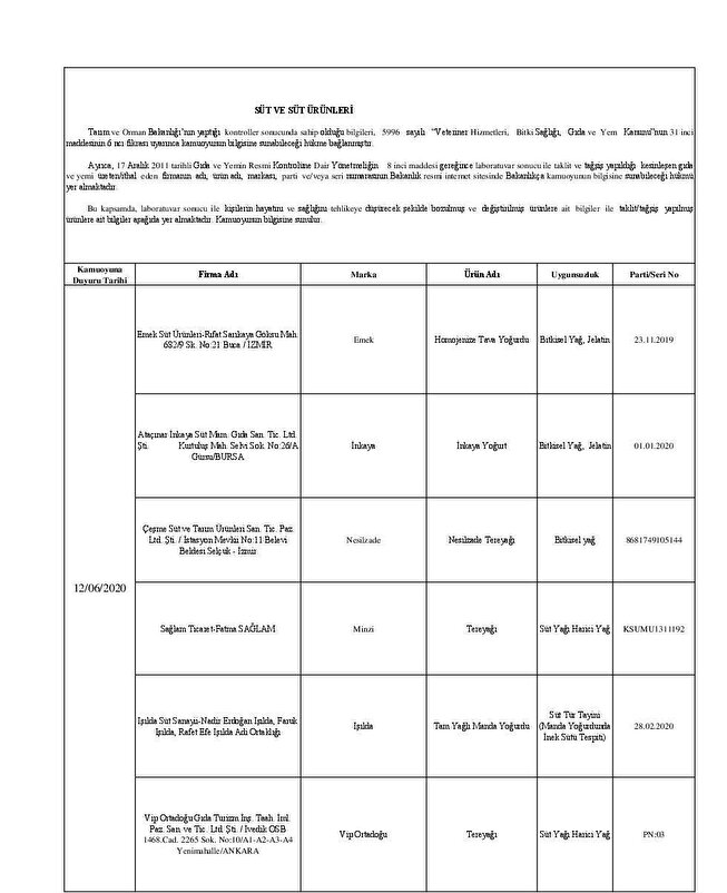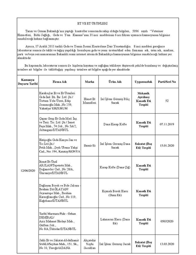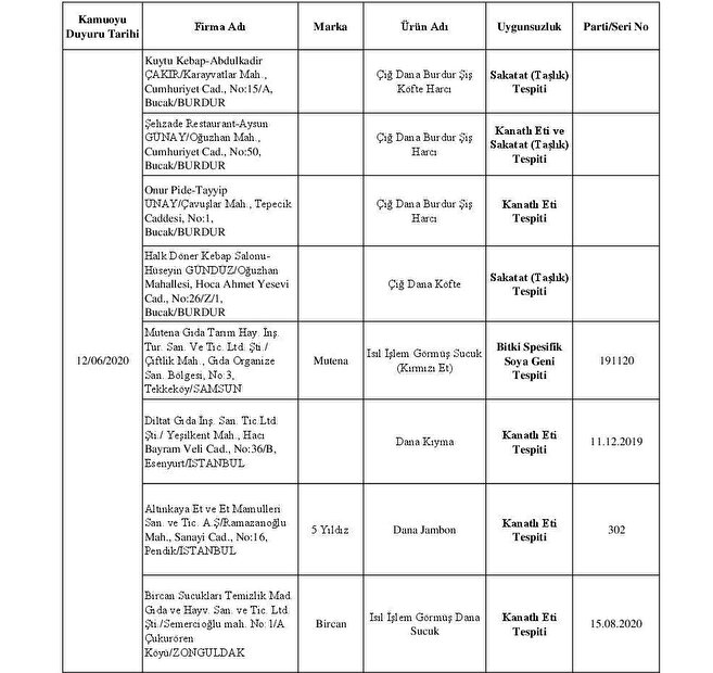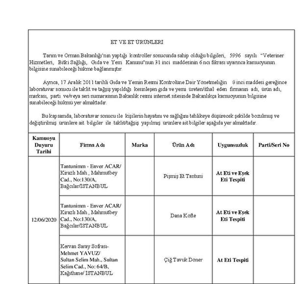Tarım ve Orman Bakanlığı taklit ve tağşiş yapılan ürünlerin listesini paylaştı. Bakanlık internet sitesinden yapılan testler sonunda sahte olduğu kesinleşen 69 firmadan 136 ürünü duyurdu. Ürünlerde insan sağlığını tehdit eden tehdit eden birçok katkı maddesi olduğu, hatta bazı ürünlerde at ve eşek eti bile tespit edildi.