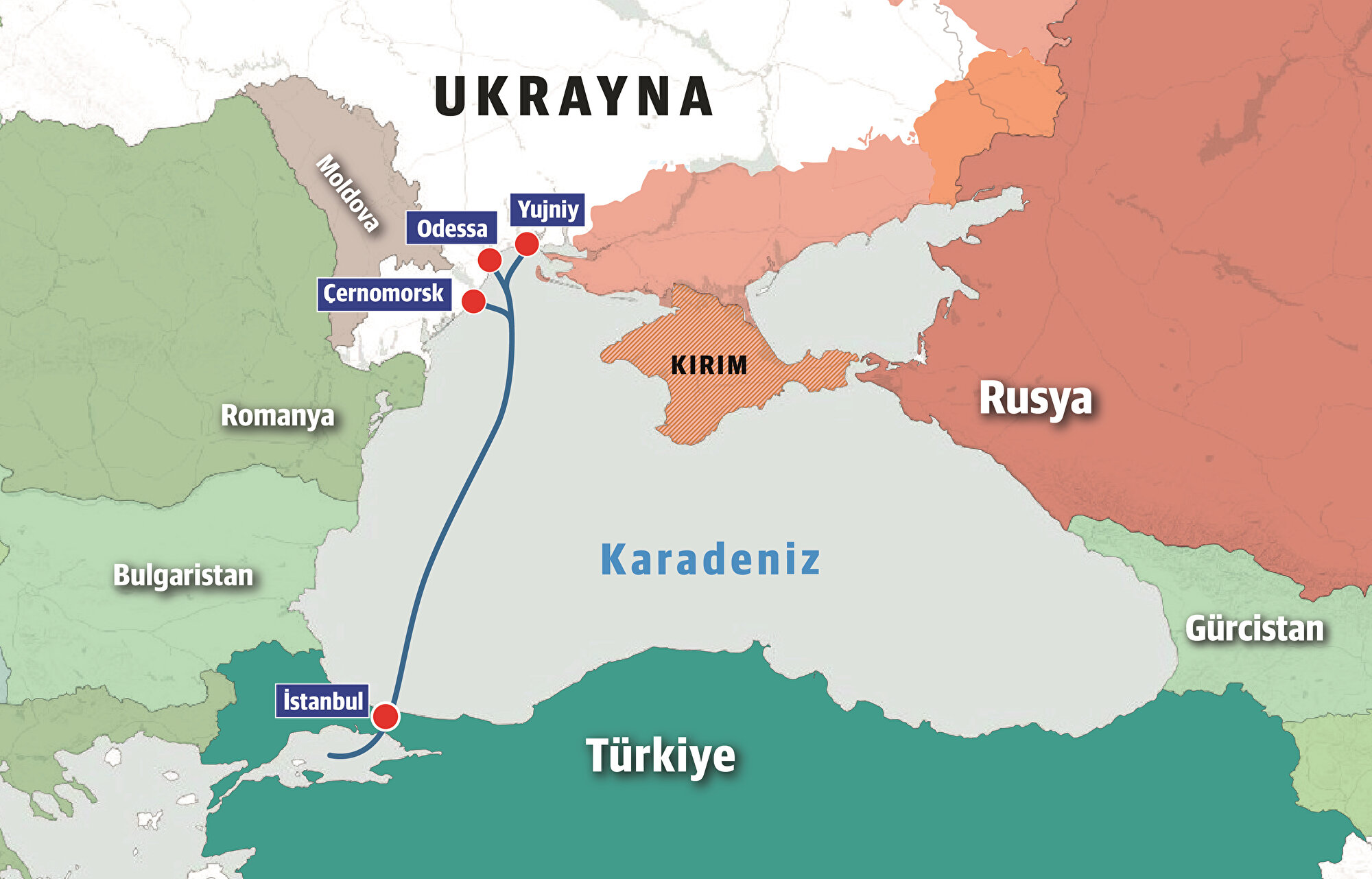 Dolmabahçe’de varılan mutabakatla Ukrayna tahılını Karadeniz’den dünyaya taşıyacak koridorun detayları belli oldu. Operasyonun tamamı, İstanbul Levent’teki Milli Savunma Üniversitesi’nde kurulması beklenen “Ortak Koordinasyon Merkezi”nden yönetilecek.