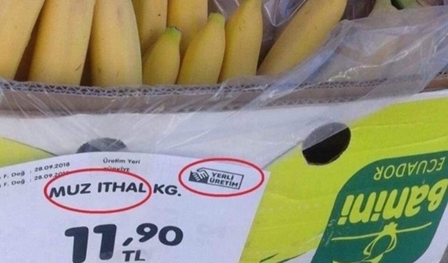 - Bir mağazadaki muz kasasının etiketinde "muz ithal" ibaresinin yanında aynı zamanda yerli üretim logosu bulunması tepki gördü.