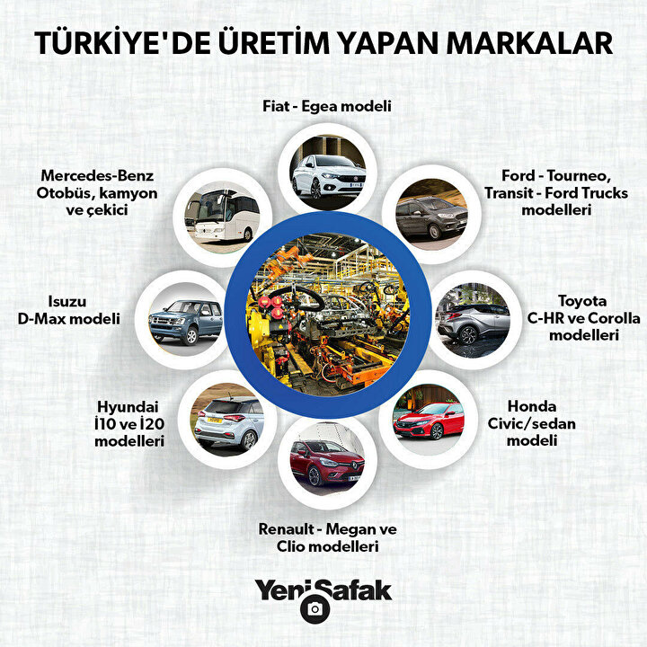 Yurt içinde üretim yapan 8 marka bulunuyor. Bunlar Ford, Fiat, Renault, Toyota, Honda, Hyundai, Isuzu ve Mercedes olarak biliniyor.