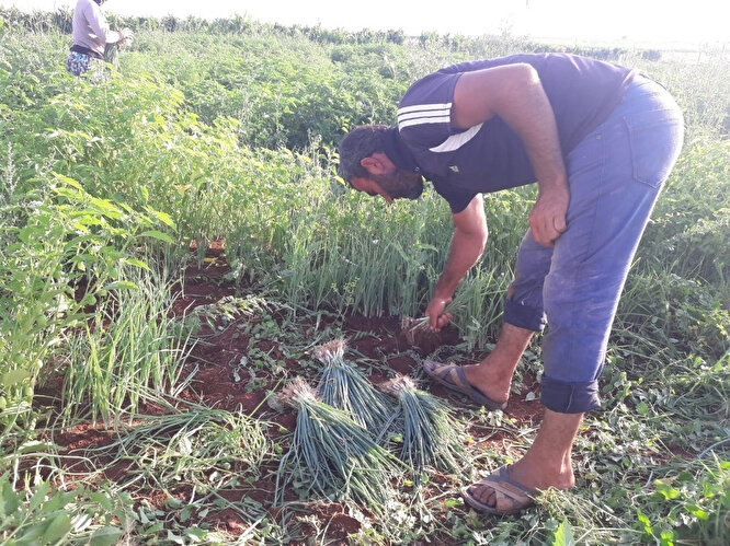 "Yakın köylerden 15 işçi çalıştırıyorum. Ürünlerimizi Şanlıurfa, Gaziantep’e pazarlıyoruz. Bizden çuvalı 5 liradan alıyorlar ama halde çuvalı 100 liraya satıyorlar. Fiyatları düşük olduğu için işçilere istediğimiz parayı veremiyoruz. Sabahın erken saatinde çalışmaya başlayan işçilere günlük 50 lira veriyorum. Geçen sene işçilere 70 lira veriyordum. Ekinlerin fiyatları çok düşük, mazot, elektrik ve gübre ise çok pahalı. Her gün biçtiğimiz maydanoz ve yeşil soğanları kendi imkanlarımızla Şanlıurfa ve Gaziantep’e götürüyoruz."