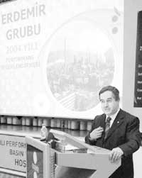 Erdemir Grubu'nun dün İstanbul Ceylan Otel'de düzenlediği 2004 Yılı Performans Değerlendirmesi Toplantısı'nda konuşan Erdemir Grubu Yönetim Kurulu Başkanı Recai Berber, grubun yıllık cirosunun 3,3 milyar dolara ulaştığını söyledi. Erdemir'in dünyanın en önemli kuruluşlarından biri haline geldiğini belirten Berber, 2004 yılı ilk 9 aylık konsolide performans değerlendirmesi dikkate alındığında Faiz Amortisman Vergi Öncesi Kar'ın (FAVÖK) satış tonajına oranı bakımından dünya demir-çelik şirketleri arasında Çin'li Tata Steel'in ardından 166 milyon dolarla ikinci konuma yükseldiklerini bildirdi.