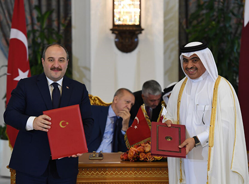 Türk Standartları Enstitüsü (TSE) ile Katar Genel Standardizasyon Teşkilatı arasında Ticareti Kolaylaştırmak ve Tüketicinin Korunmasını Sağlamak Üzere Laboratuvar Kurulum Projesi İşbirliği Konusunda Ortak Niyet Beyanı, Sanayi ve Teknoloji Bakanı Mustafa Varank ile Katar Belediye ve Çevre Bakanı Abdullah bin Abdülaziz Al Subaie tarafından imzalandı.