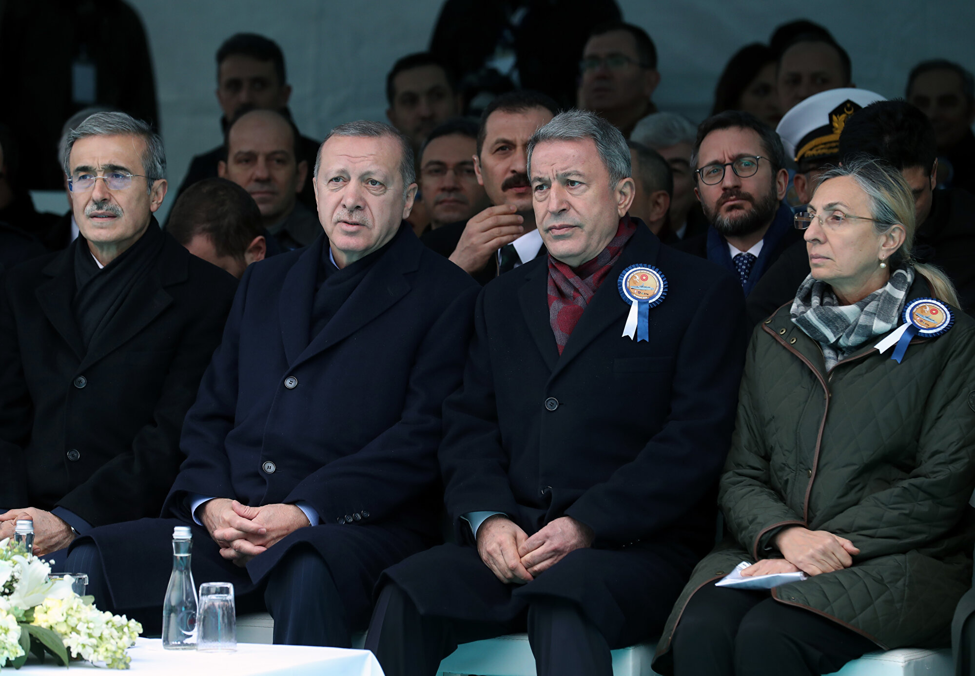 Olmadık iftiralarla, yalan yanlış bilgilerle milletimizin kafasını karıştırmaya çalışanlar en büyük zararı Türk savunma sanayine veriyor. Bunlar akla ve vicdana sığmayan iddialarıyla, bir çok başarılı projeyi hayata geçiren kamu özel sektör işbirliğini de dinamitlemeyi hedefliyor. Şu gerçeğin altını çok net çizmek istiyorum. Savunma sanayinde özel sektör düşmanlığı yapmak; "Türkiye insansız hava aracı üretmesin... İşte bugün burada olduğu gibi korvetler, istihbarat gemileri üretmesin" demektir. Bunların yegane amacı Türkiye'yi ekonomide IMF'ye, diplomaside batıya, savunma sanayinde de belli başlı devletlere mahkum etmektir. Biz şimdiye kadar olduğu gibi bundan sonra da terör örgütüne taşeronluk yapanlara değil, milletimizin ne dediğine bakacağız. Biz, yüreği bu ülke için çarpanların hassasiyetini dikkate alacağız. Biz FETÖ'cü alçaklara alkış tutanlara değil, göğsünü tanklara siper edenlere kulak kabartacağız. Türkiye başarı hikayesini yazmaya devam edecek.