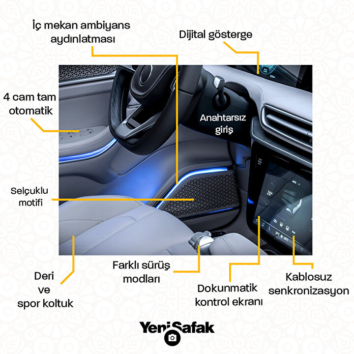 Türkiye'nin Otomobili Girişim Grubu'nun resmi Twitter sayfasından "Türkiye’nin Otomobili"nin elektrikle çalışma sistemini yansıtan 10 saniyelik bir video animasyon ve aracın iç kısmını gösteren bir fotoğraf yayımlandı.