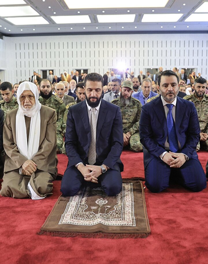 Şara'ya Suriye Başmüftüsü Üsame er-Rifai de eşlik etti.