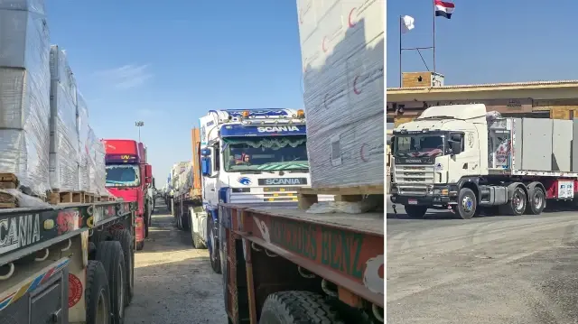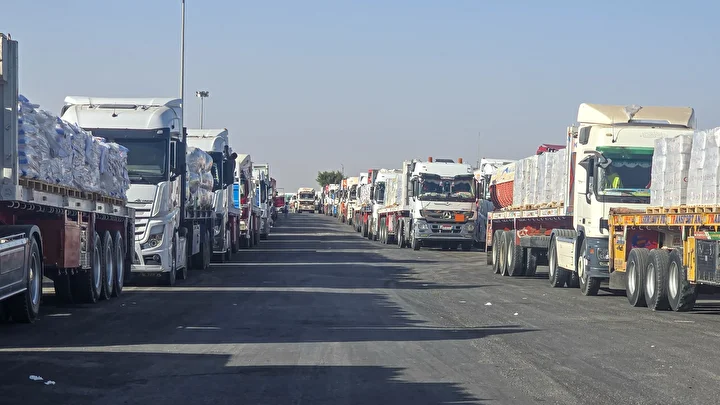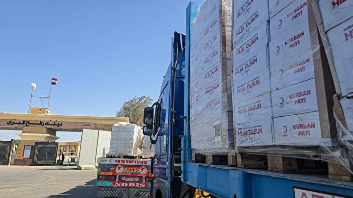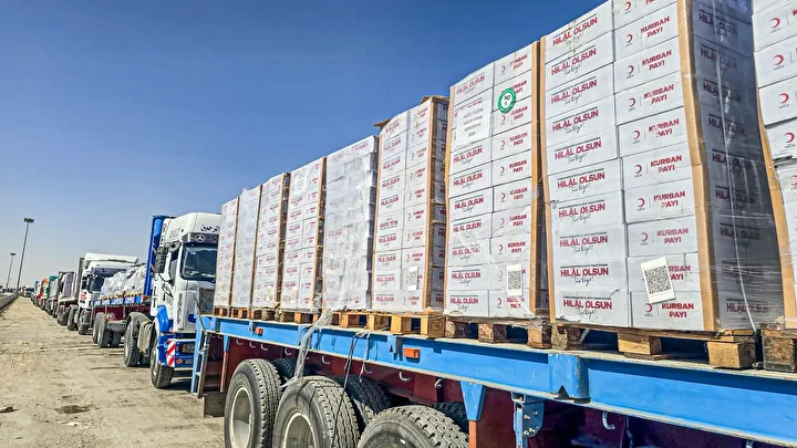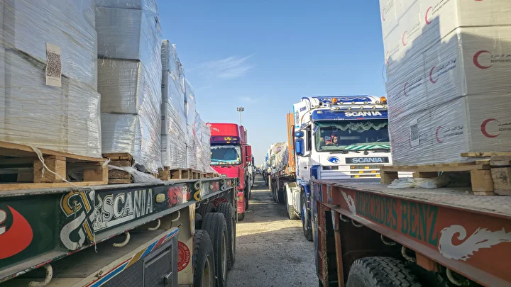 Gazze Şeridi’ne insani yardım taşıyan yeni bir tır konvoyu, Refah Sınır Kapısı'nın yanında bulunan koridordan geçerek, Kerem Ebu Salim (Kerem Şalom) Sınır Kapısı'ndan Gazze'ye giriş yaptı.