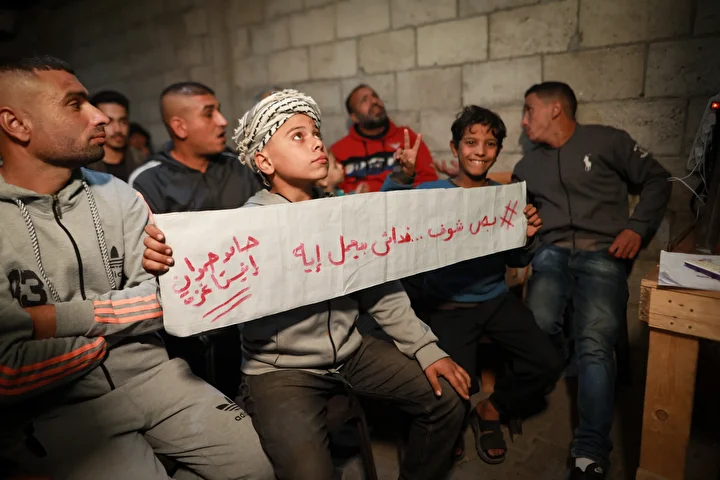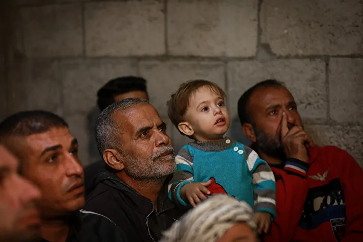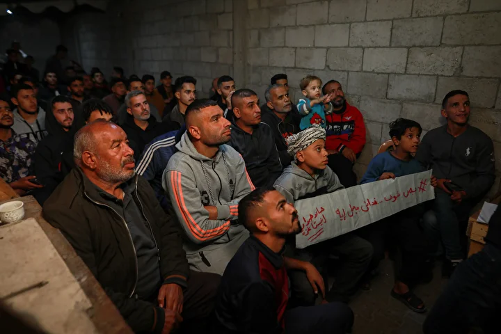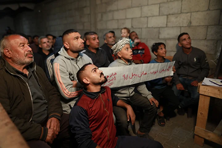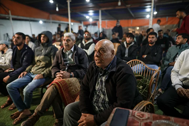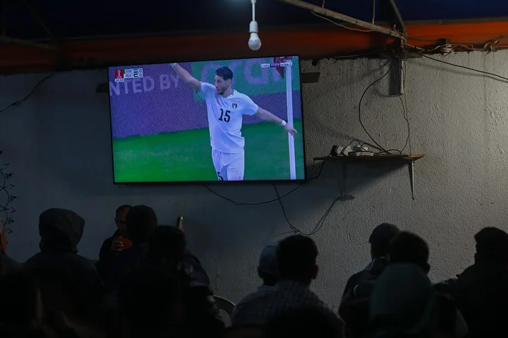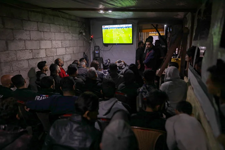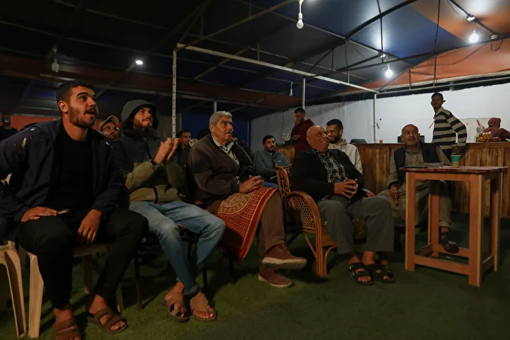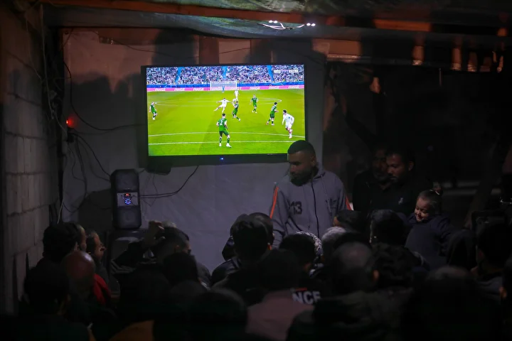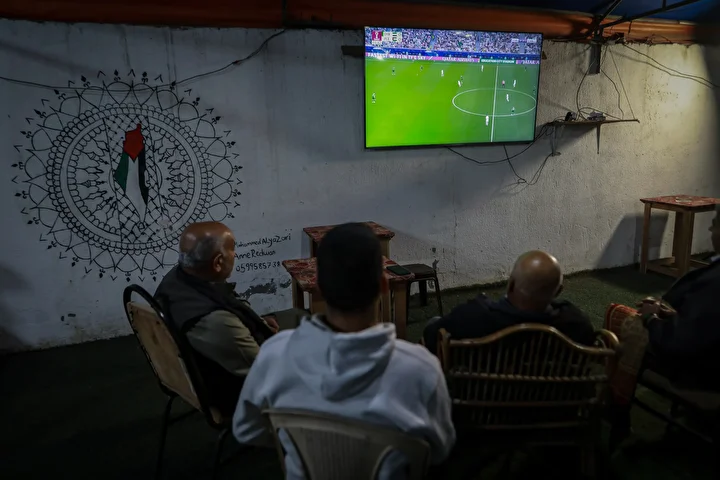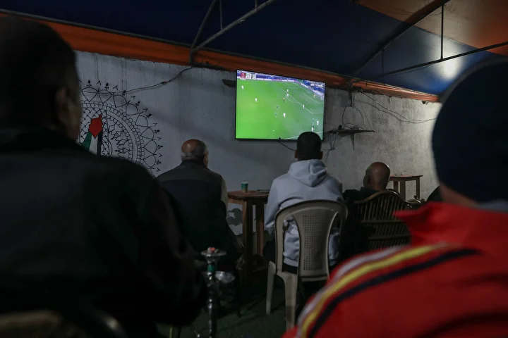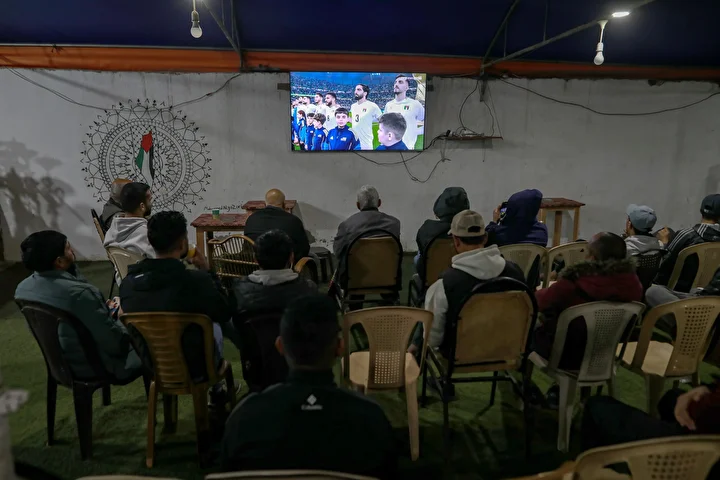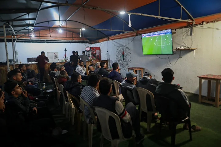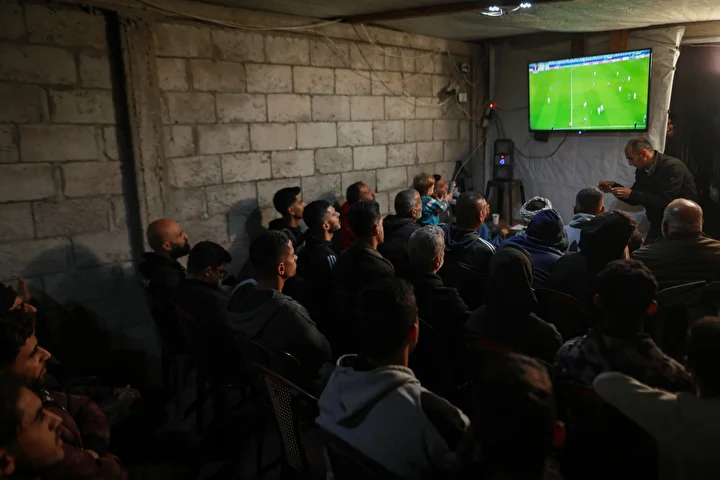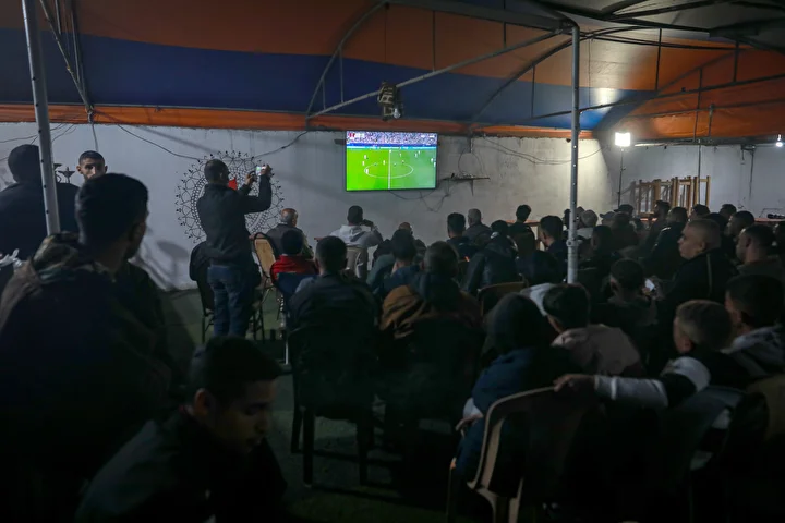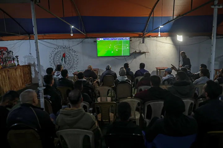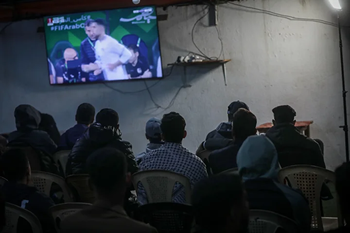 Gazze Şeridi’nin Deyr Belah kentindeki Filistinliler, 2025 FIFA Arap Kupası kapsamında oynanan Filistin–Suriye maçını ekranlardan izledi.