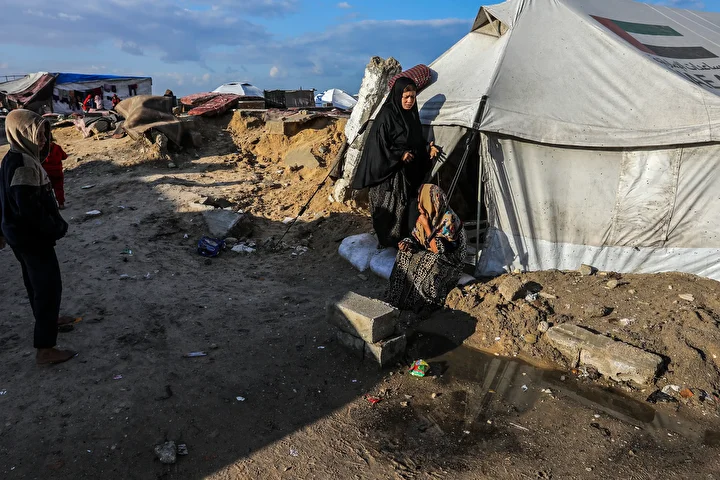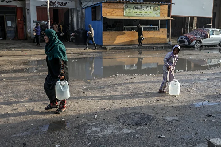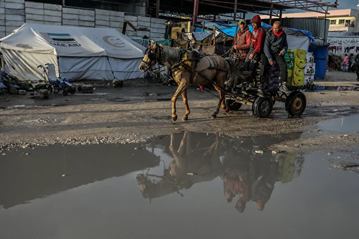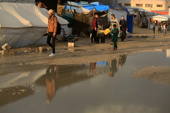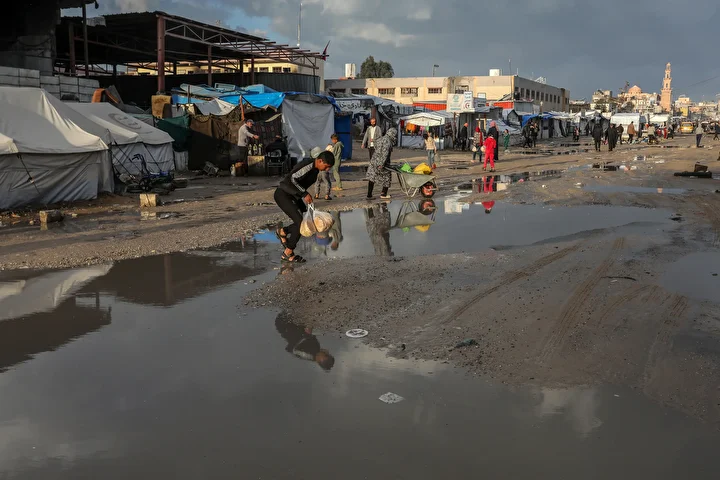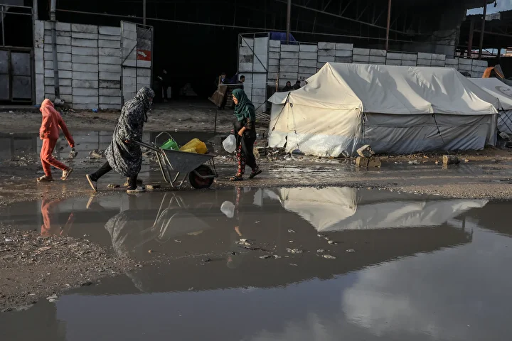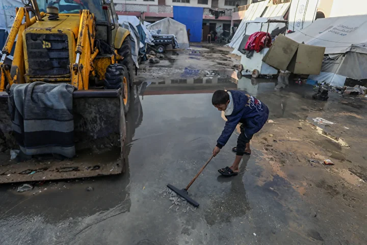 Gazze Şeridi’nin güneyindeki Han Yunus kentinde etkili olan sağanak yağış, yerinden edilen Filistinlilerin yaşadığı sokakları ve çadırları su altında bıraktı. Soğuk hava ve şiddetli yağış nedeniyle zor yaşam koşullarıyla mücadele eden Filistinlilerin çadırları, kuvvetli rüzgar ve yağmur sonucu zarar gördü.