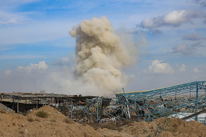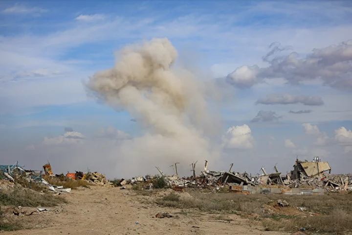 İsrail ordusu, Gazze Şeridi’nin kuzeyindeki Gazze kentinde ‘sarı bölge’ içinde yer alan Şucaiyye Mahallesi’ndeki bazı binaları havaya uçurdu. Patlamanın ardından bölgeden yoğun duman ve toz bulutu yükseldi.