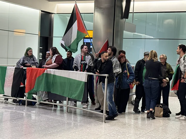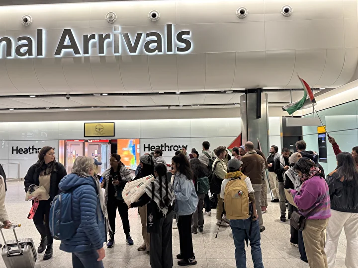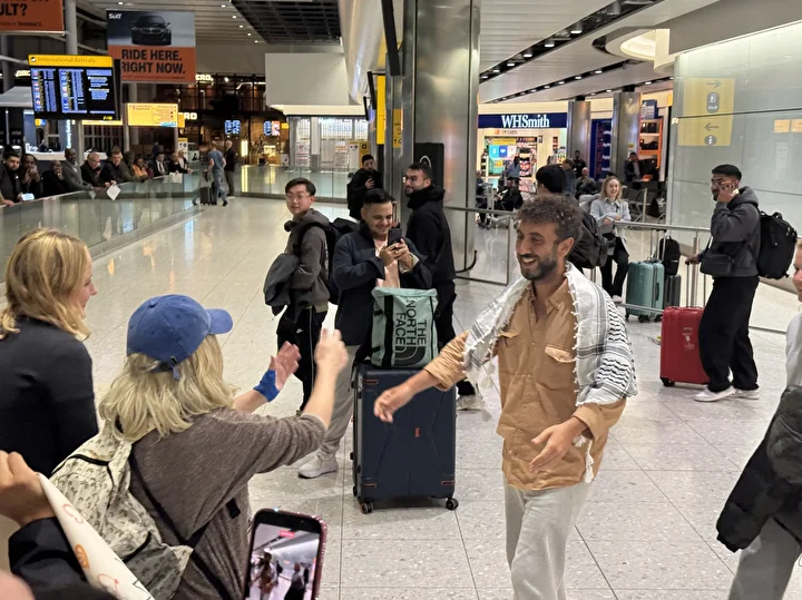 Aktivistler Wilkinson, Andrieu, Cummings ve Snedker’i, yerel saatle 21.25'te (TSİ 23.25) indikleri Londra Heathrow Havalimanı'nda Filistin destekçileri ve yakınları karşıladı.