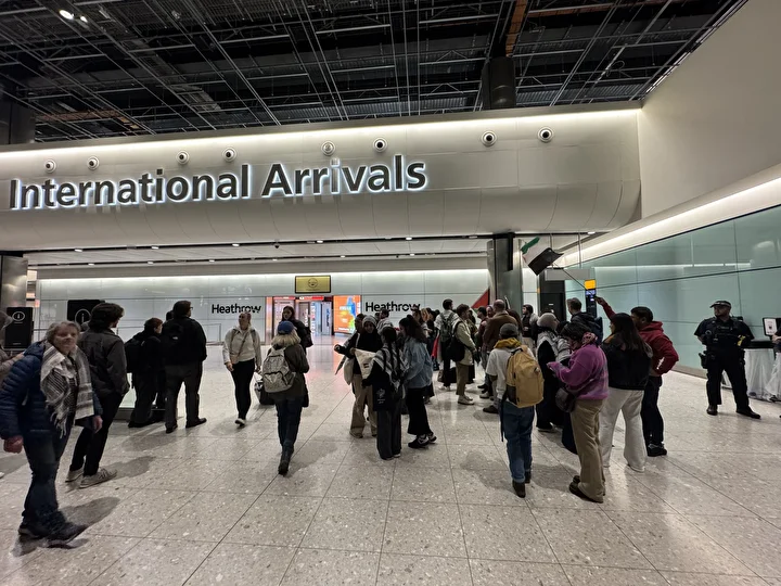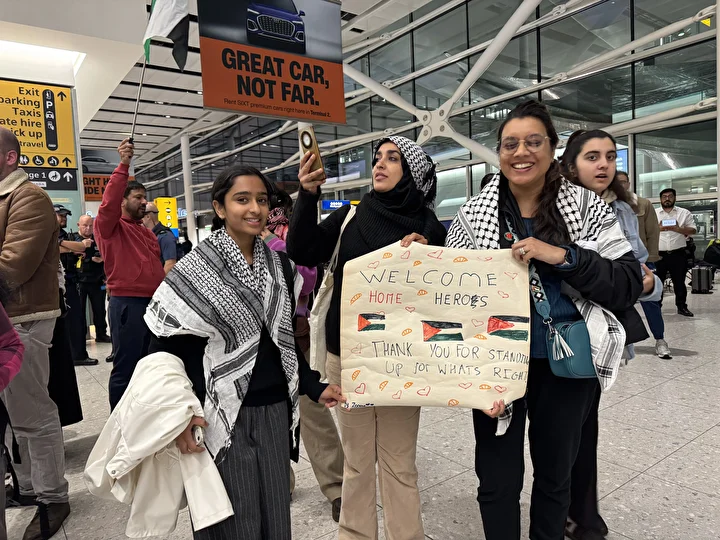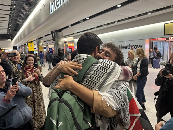 İsrail'in, Gazze'ye insani yardım götürmek için yola çıkan Küresel Sumud Filosu'na yaptığı saldırıda alıkonduktan sonra dün Türkiye'ye sınır dışı edilen 4 İngiliz, Türk Hava Yolları'nın tarifeli uçağıyla Londra'ya geldi.