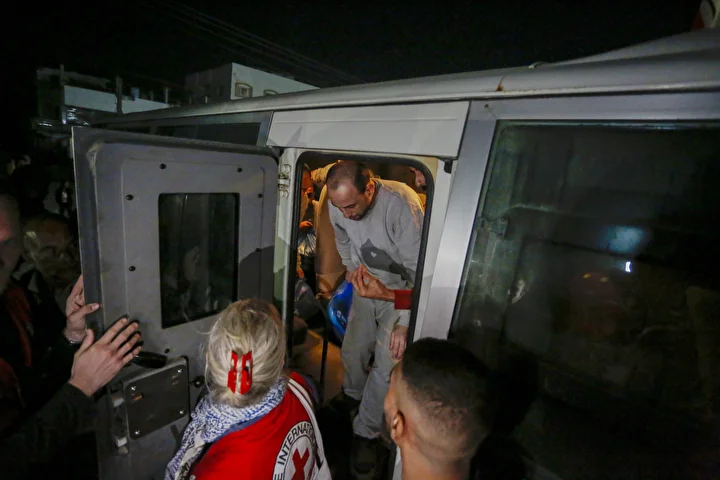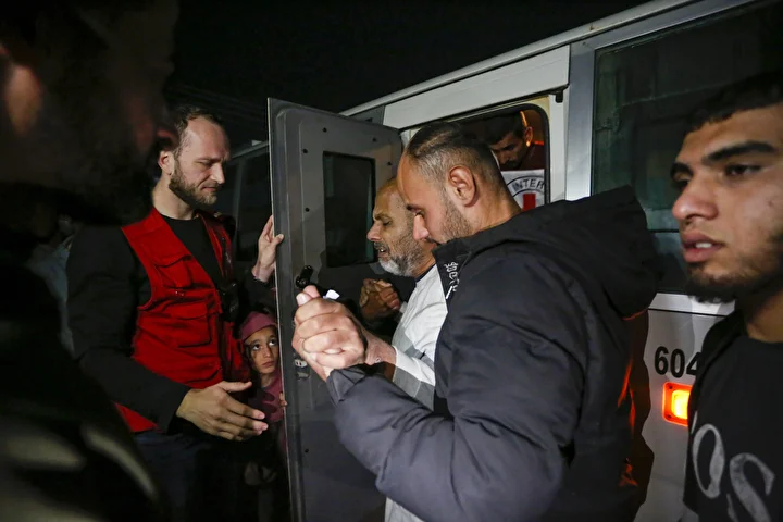 İsrail tarafından Gazze'de tutuklanan bir grup Filistinli esir, serbest bırakılmalarının ardından Kızılhaç'a ait araçlarla Karam Ebu Salim Sınır Kapısı'ndan geçerek Deyr Belah kentine getirildi. Serbest bırakılan Filistinliler, sağlık kontrolü için Aksa Şehitleri Hastanesi'ne nakledildi.