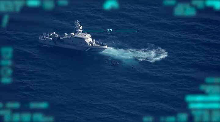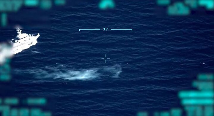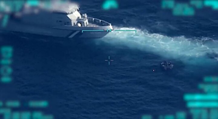 Türk kara sularını ihlal edip göçmenleri ölüme terk eden Yunan teknesi insansız hava aracıyla görüntülendi.