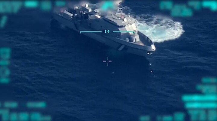 Milli Savunma Bakanlığı, Ege Denizi'nde Yunanistan'a ait sahil güvenlik botunun düzensiz göçmenleri Türk kara sularına ittiği anın görüntülerini paylaştı.