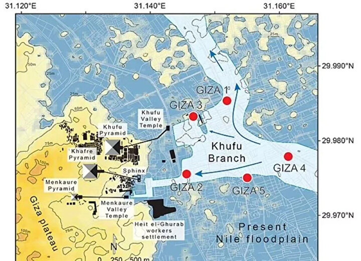 Proceedings of the National Academy of Sciences (PNAS) adlı bilimsel dergide yayımlanan çalışma kapsamında araştırmacılar, Giza bölgesinde 8 bin yıllık akarsu varyasyonlarını yeniden oluşturmak için polenden türetilen bitki örtüsü modellerini kullandı. Ekip ayrıca bataklık bitkilerinin, yumuşak ıslak topraklarda ve göl kenarlarında yetişen yarı sucul bitkilerin bölgedeki kalıntıları aradı. Sonuçlar, Khufu kanalınıni bölgede yeterince uzun süre yüksek seviyelerde kaldığını gösterdi.