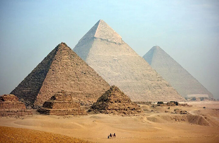 MÖ 484-425 yılları arasında yaşamış olan antik Yunan tarihçi Herodot, Giza piramitlerini tamamlamanın 20 yıl sürdüğünü ve inşaatta 100 bin kişinin çalıştığını belirtti. Mumyalanmış kalıntılar ve bir zamanlar piramitlere gömülen değerli eşyalar mezar soyguncuları tarafından çalındı ve yapılar binlerce yıl içinde hasar gördü. Arkeologlar, bu nedenle dev yapıların şu anda ilk inşa edildiklerinden çok daha küçük olduğunu belirtiyor.