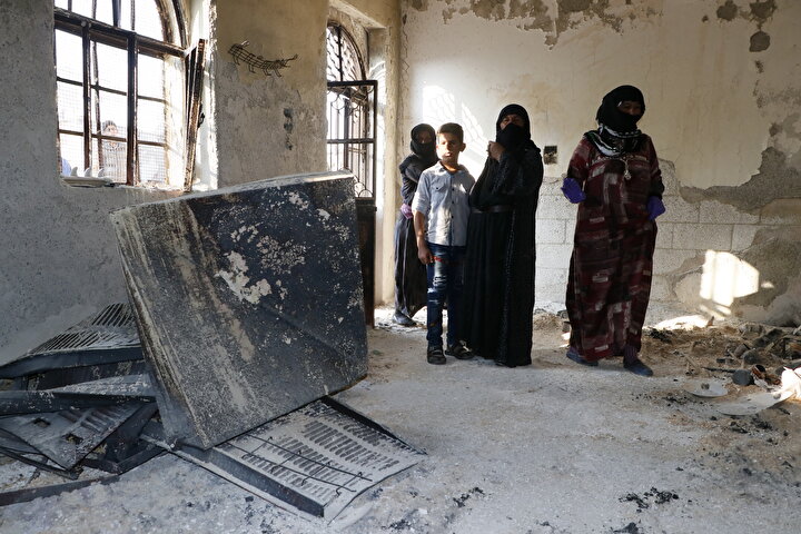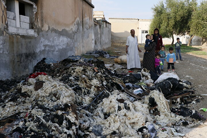 Barış Pınarı Harekatı ile terörden arındırılan Tel Abyad'daki ikametlerine dönen Suriyeliler, terör örgütü YPG/PKK'lıların kaçarken ateşe verdiği evlerinin adeta enkaza dönmüş haliyle karşılaşmanın hüznünü yaşıyor.