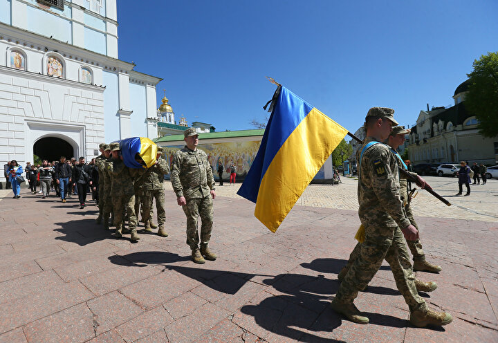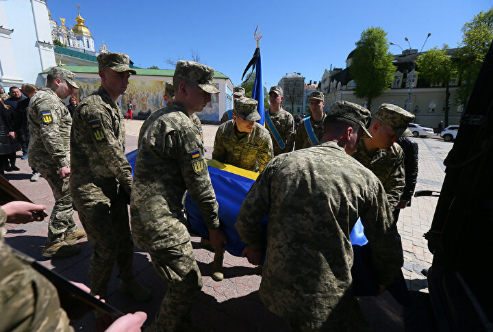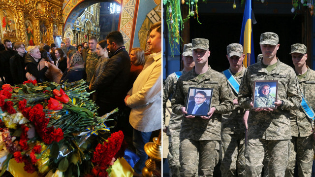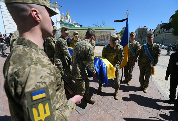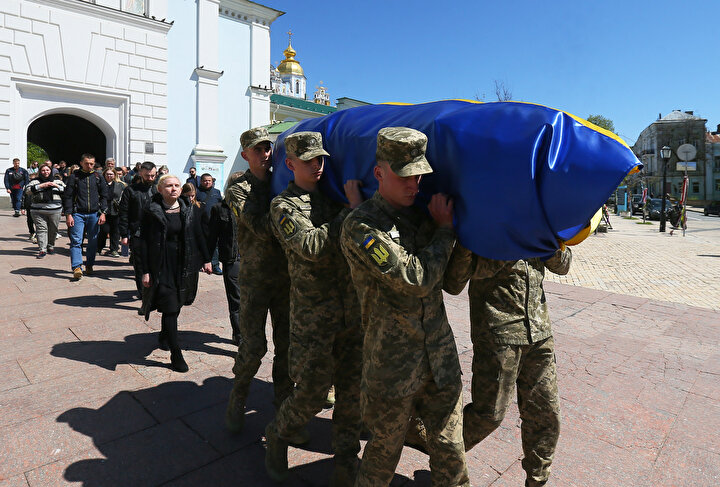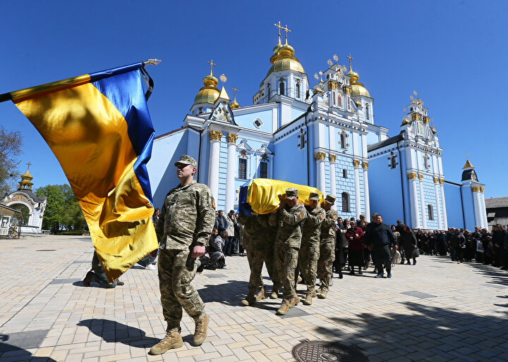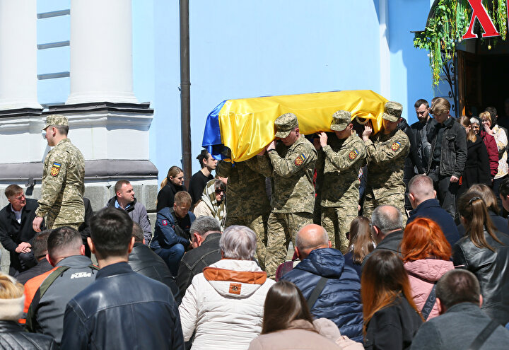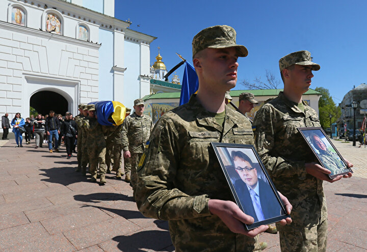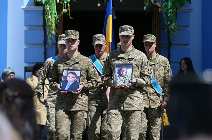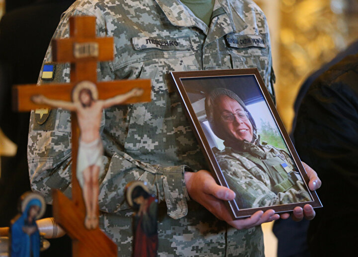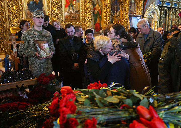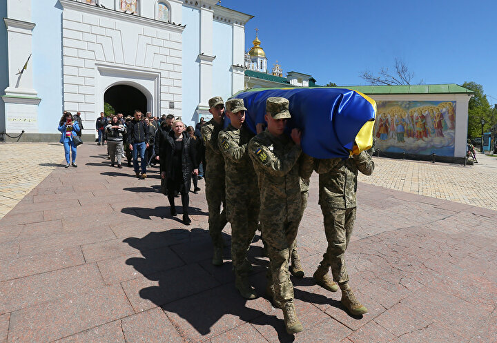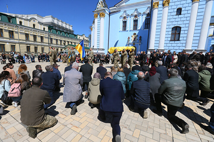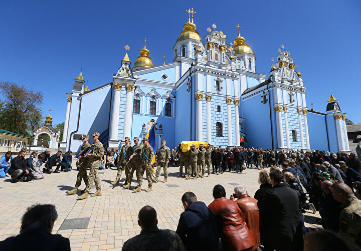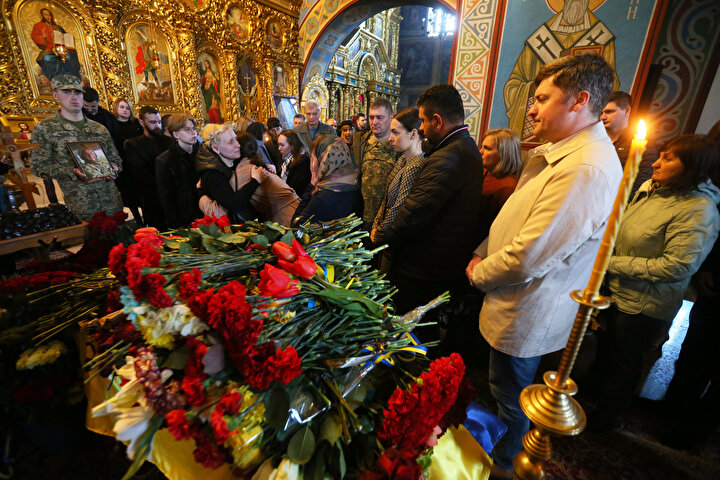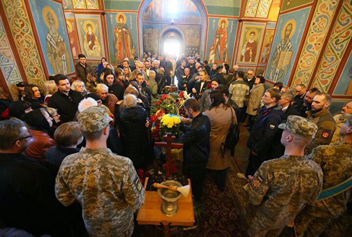 Ukrayna ile Rus birlikleri arasında yaşanan çatışmalar sonucu yaşamını yitiren Ukraynalı asker ve avukat Oleksandr Polivodsky için Ukrayna'nın başkenti Kiev'de bulunan St. Michael Altın Kubbeli Katedrali'nde cenaze töreni düzenlendi.