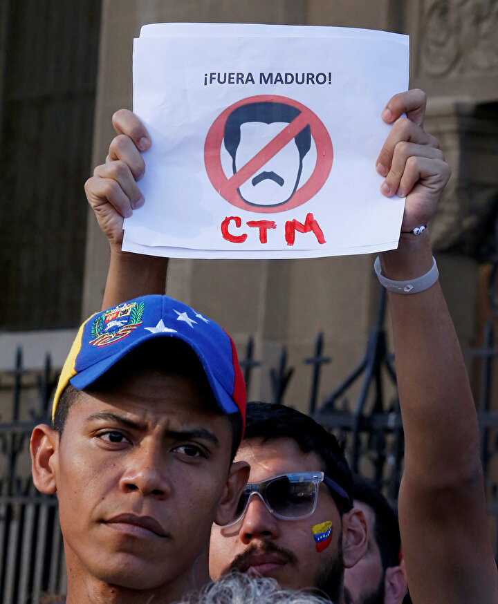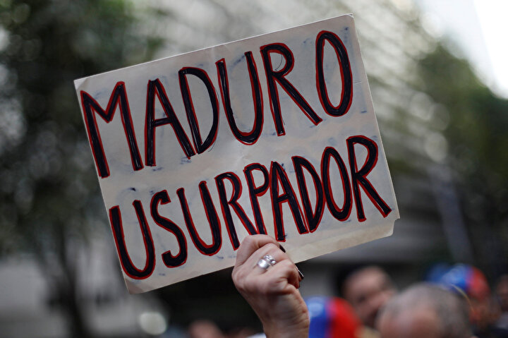 Venezuela sokaklarında Maduro karşıtları da Maduro yanlıları da gösteri düzenliyor. Bir protestoda yer alan yazı 'Gaspçı Maduro'
