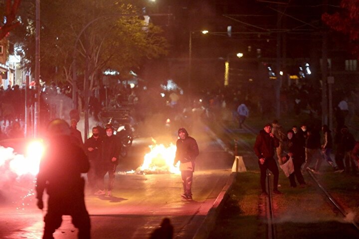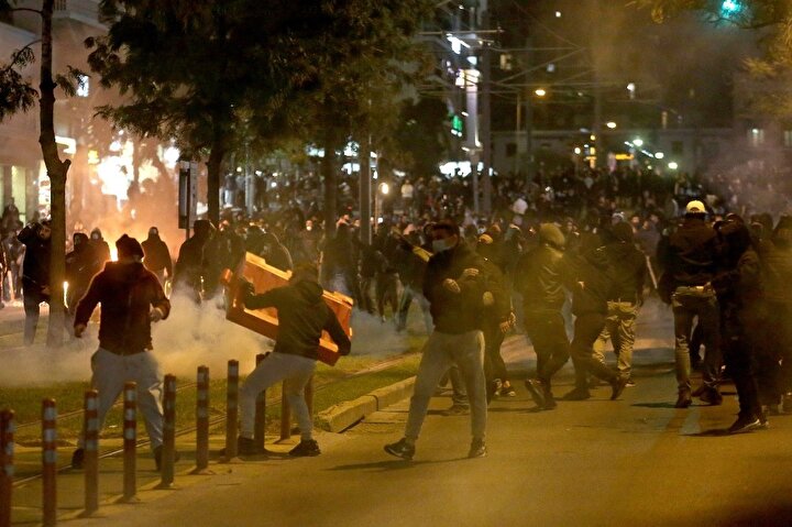 Göstericiler, polise taş ve molotof kokteyli ile saldırırken, polis göstericileri dağıtmak için ses bombası, göz yaşartıcı gaz ve tazyikli su kullandı.