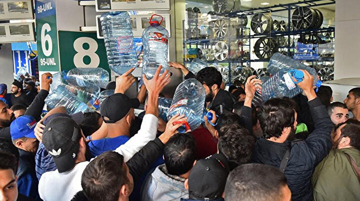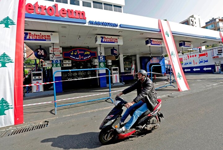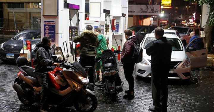 Benzin istasyonları önünde araçları ve motorsikletleriyle akaryakıt almayı bekleyen Lübnanlılar uzun kuyruklar oluşturdu.