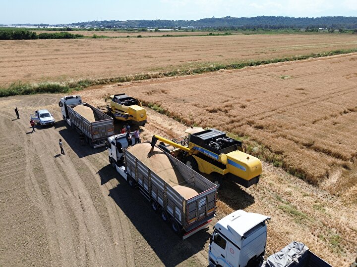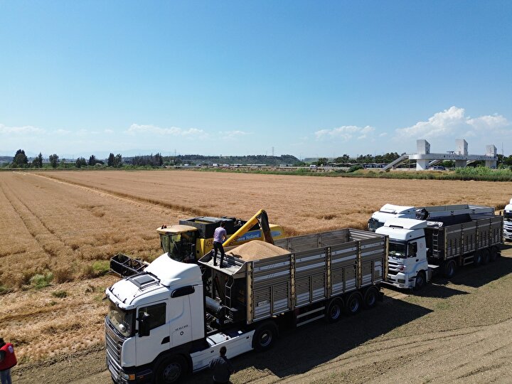 Örtü altı tarımın yanı sıra tahıl üretiminde de öne çıkan Aksu'da, yüzlerce dönüm alanda biçerdöverler yardımıyla hasat yapılıyor. Yoğun mesai yapan üreticiler, hasat edilen buğdayı tırlara yükleyerek, depolara taşınmaya başladı.