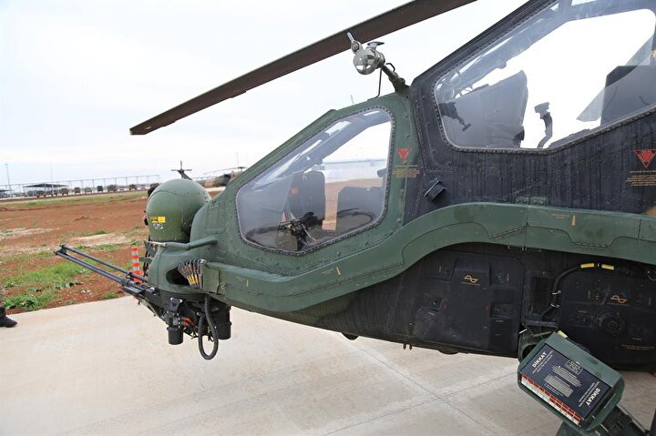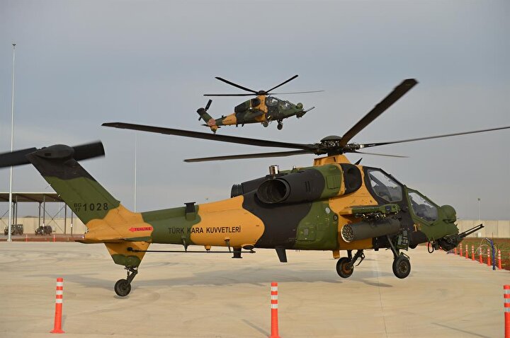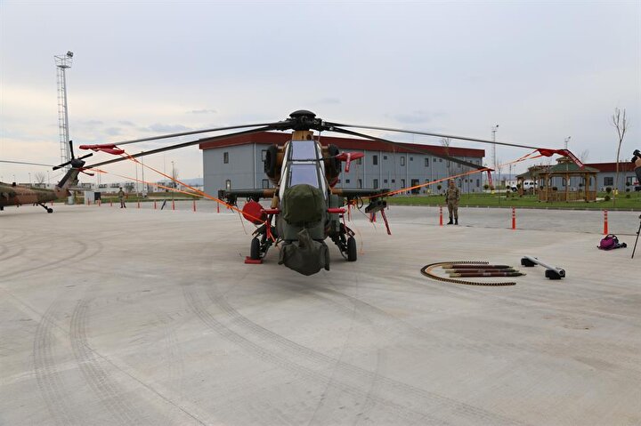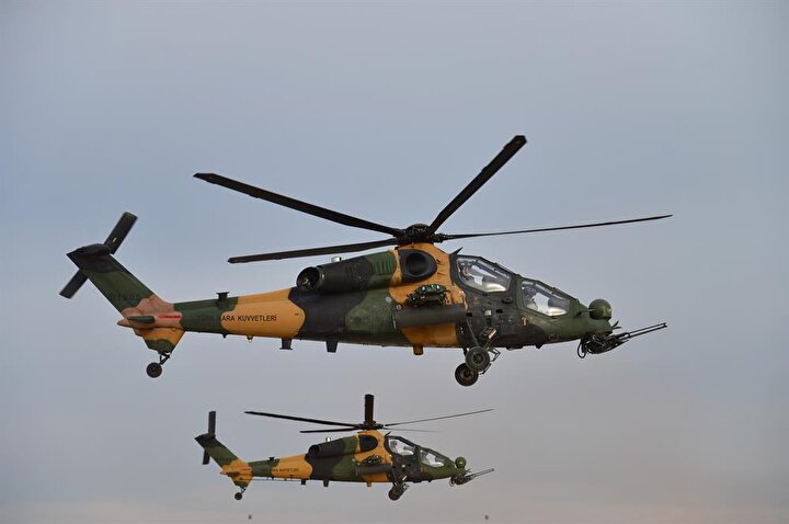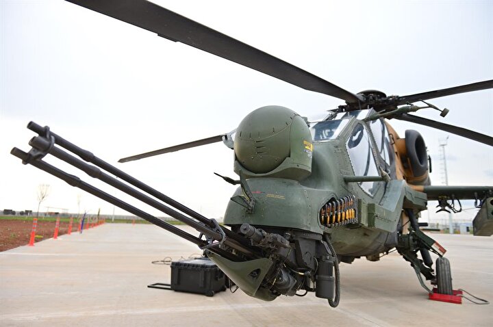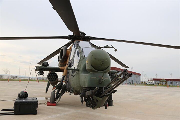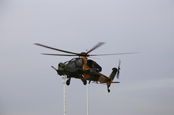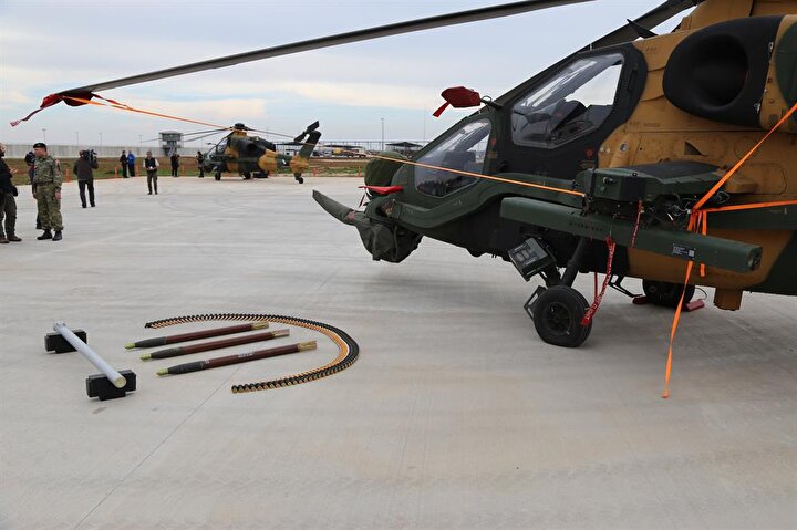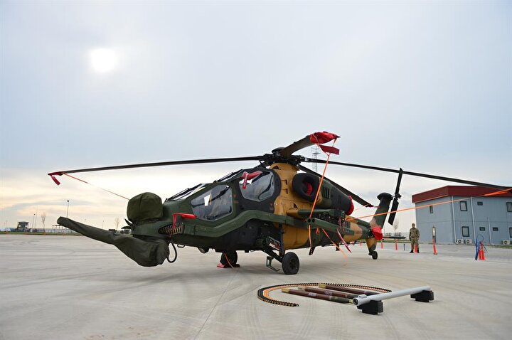 ATAK taarruz helikopterleri, 20 milimetrelik 3 namlulu topu, 70 milimetrelik 2,75 inçlik roketleri, lazer güdümlü cirit füzesi, uzun menzilli anti tank silahı ve ısı güdümlü stinger füzesi ile dosta güven düşmana korku veriyor.