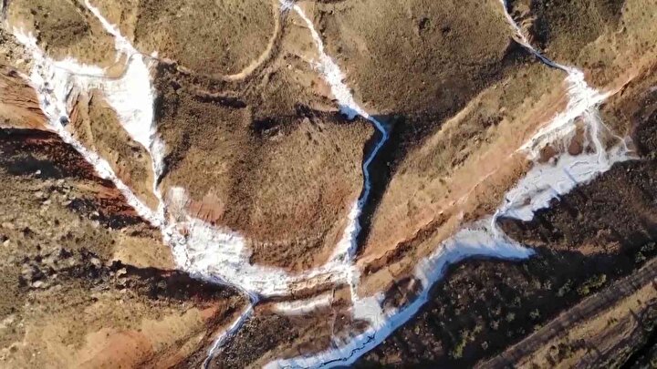 Kırıkkale’nin Delice ilçesinde dağların eteklerindeki fay hattından günlük 200 bin litre civarında doğal kaynak suyu yeryüzüne çıkıyor. Toprak minerallerini toplayıp sera tipi havuzlara getirilen doğal kaynak suyu, güneş ışınlarıyla buharlaştırılıyor.