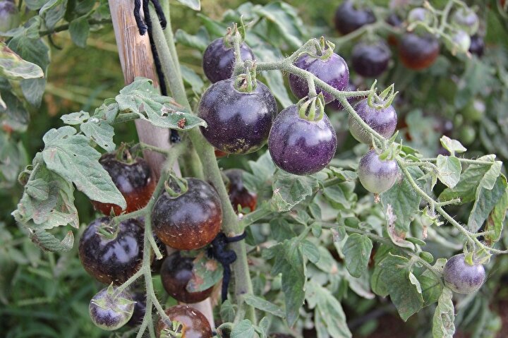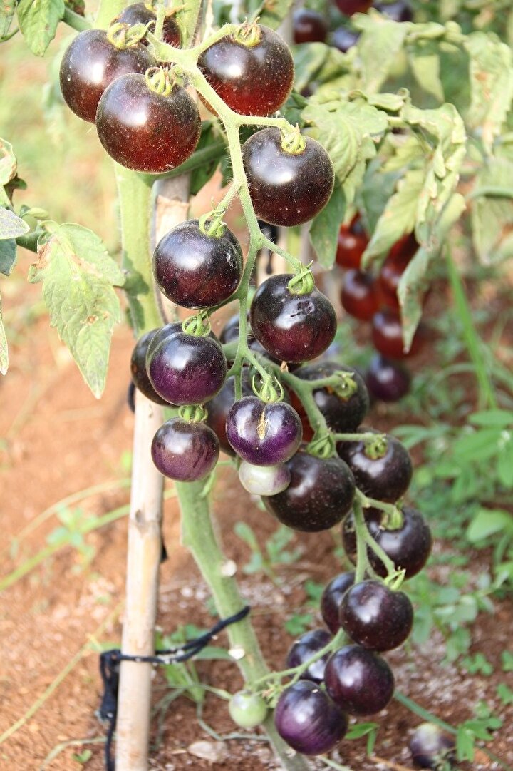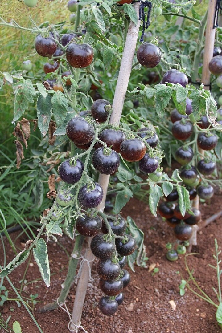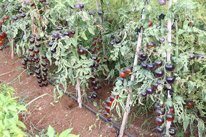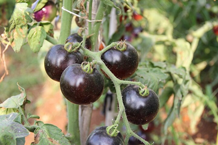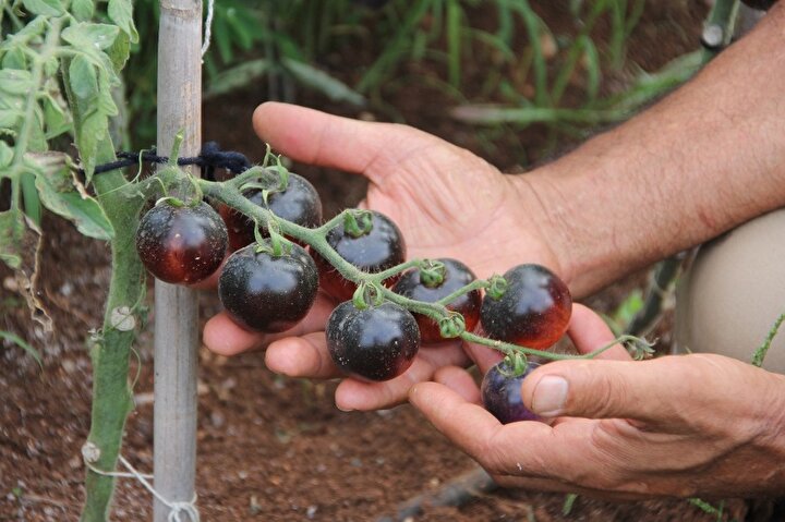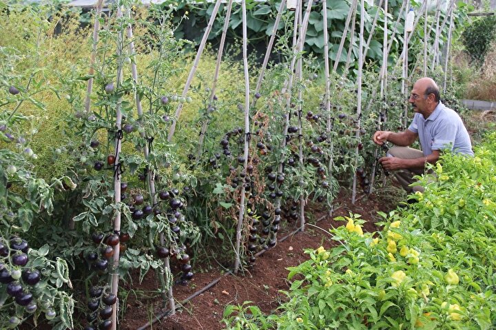 Mersin'in merkez Mezitli Belediyesi'nin gönüllülere tahsis ettiği sebze üretim alanında yetiştirilen domatesleri görenler şaşırıyor. Domatesle özdeşleşen kırmızı renk, bu bahçede siyaha döndü. Emekli bir deniz astsubayı, salkım salkım parlak siyah domates yetiştirdi.