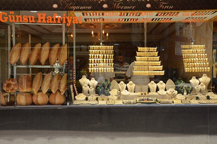 Ordu'nun Korgan ilçesinde bir kuyumcu dükkanının vitrininde altın ziynet eşyaları ile birlikte 'ekmek' satılması görenlere hayrete düşürüyor. Bazı vatandaşlar, döviz bozdurmak için girdikleri kuyumcudan ekmek de alıp öyle ayrılıyor.
