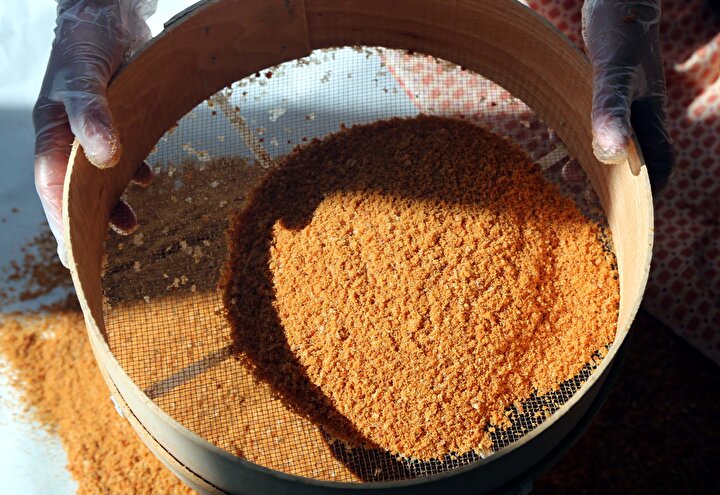Kurutulan balık yumurtalarının bir kısmı da makarna başta olmak üzere çeşitli yemeklerin üzerine ekilerek kullanılması amacıyla tokmaklarla ezildikten sonra elekten geçirilerek toz haline getiriliyor.
