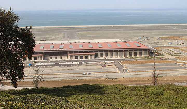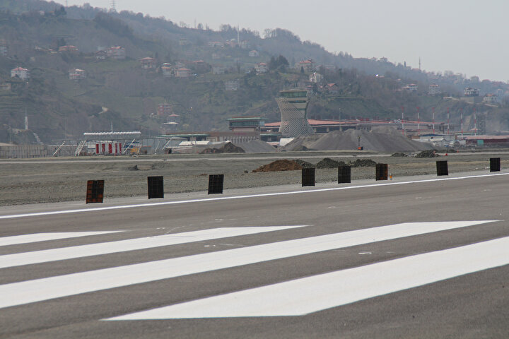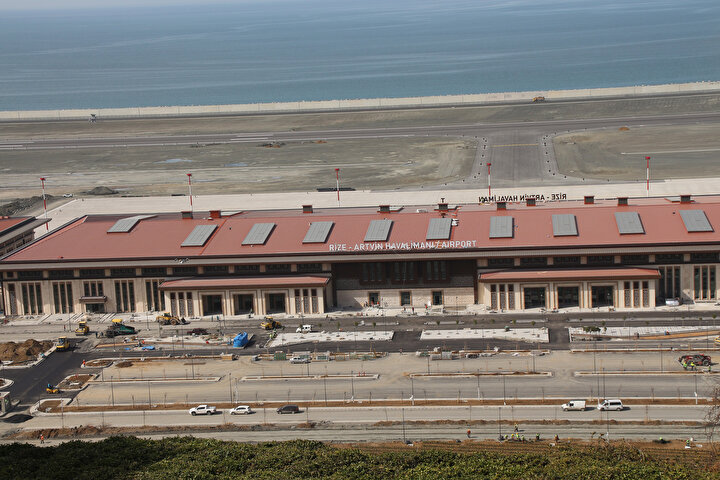 Deniz dolgusunun ardından yöre mimarili terminal binaları ile çay bardağı şeklindeki kontrol kulesi ve çay yaprağı giriş takı da tamamlandı. Tabelası asılan havalimanının 3 bin metre uzunluğunda, 45 metre genişliğindeki çizgileri çizilen, yaklaşım ışıkları hazır hale getirilen pistine ilk uçağın salı günü inmesi planlanıyor.