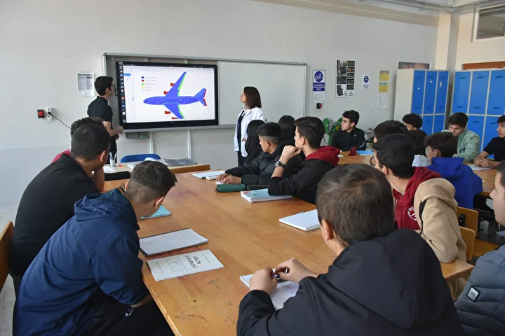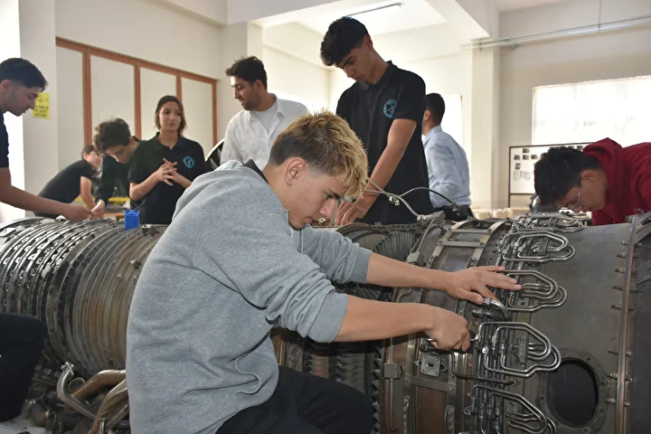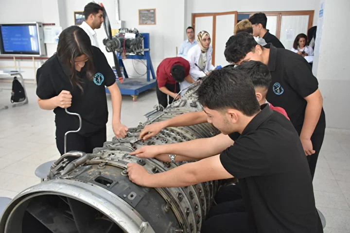 Uçak Bakım Alanı'nın öğrencilerin ilgisini çektiğini anlatan Koçak, "Bu alandaki öğrencilerimiz sınavlı ve sınavsız olarak okulumuza gelmektedir. Bazı protokollerimiz var. Bu protokol neticesinde çocuklar dört yıl lise eğitimini görürken de sektörle tanışıyor. Öğrencilerimiz üçüncü sınıfın yaz tatilinde 40 gün staj yapıyor. Mezunların çoğu kendi alanlarıyla ilgili işletmelerde, fabrikalarda ve kurumlarda çalışıyor. Mezun olduklarında iş kaygısı yok." diye konuştu.