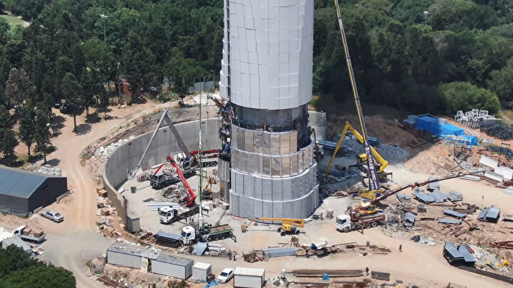 221 metre boyundaki betonarme bölümün tamamlanmasının ardından kulenin antenleri taşıyacak çelik konstrüksiyon bölümünün yapımına başlanmıştı.