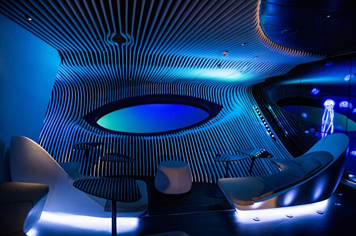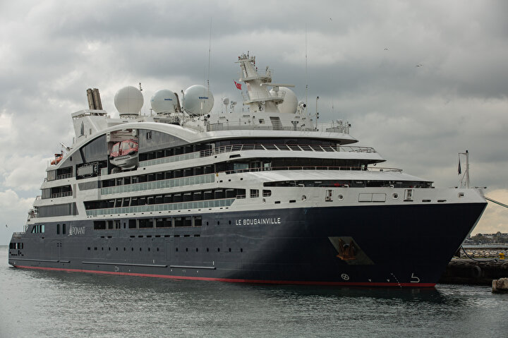 Fransa bandıralı lüks kruvaziyer 'Le Bougainville' İstanbul'a demir attı. Geminin en özel bölümlerinden biri olan 'Blue Eyes' odasında balinaların sesleri duyulabiliyor.