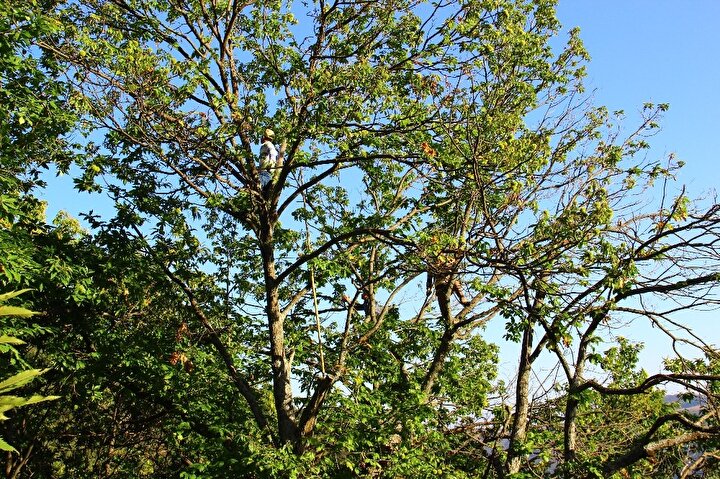 Kestane hasadında zamanla yarışmak zorunda kalan çiftçiler yüksekliği nerdeyse 50 metreye ulaşan ağaçlarda ölümle burun buruna kestane hasadı yapıyorlar.