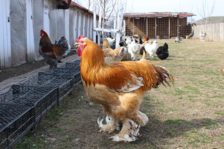 İlçeye yaklaşık 4 kilometre uzaktaki 5 dönümlük alanda süs tavuğu yetiştirmeye başlayan Demir, zamanla hem bunların hem de kümeslerin sayısını artırdı.
