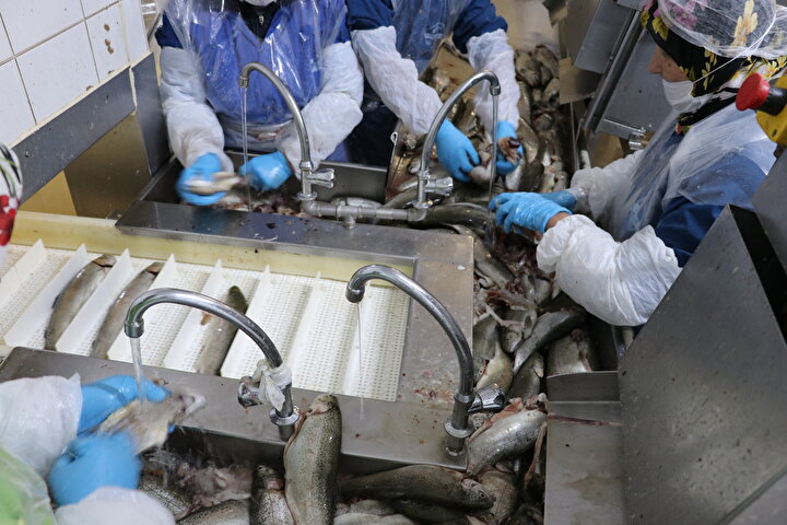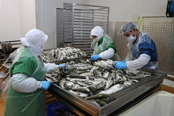 Çiftliklerde yetiştirilen alabalıklar temizlendikten sonra 6 saat tuzlu suda bekletiliyor. Ardından özel fırınlarda meşe dumanında tütsülenen balıklar, dinlendirildikten sonra vakumlu paketlerle ihracata hazırlanıyor.