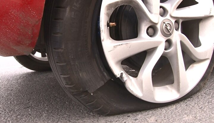 Aracının tekeri parçalanan Uğur Akgürgen, “Köprü altında mazgal var orada yerinden çıkmış üzerinden geçtik son durumda budur. Bir tek ben değil benim gibi 4 tane arkada, önde 4 araba Allah korusun can güvenliğimiz yok. Kimse önlem de almamış araba yukarıya çıktı indi resmen, tutmasak zincirleme kaza olacaktı” dedi.