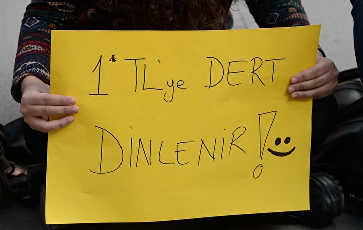 Uşak Üniversitesi öğrencisi iki kız arkadaş, kentin işlek caddelerinden birinde "1 TL'ye dert dinlenir" yazısıyla "müşteri" çekmeye ve talep edenlerin derdine derman olmaya çalışıyor.