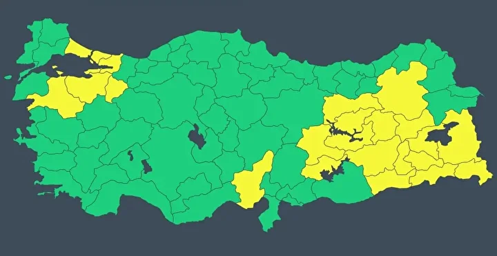 Sarı kodlu uyarı yapılan iller: Adıyaman, Balıkesir, Bilecik, Bingöl, Bitlis, Bursa, Diyarbakır, Elazığ, Erzincan, Erzurum, Hakkari, İstanbul, Kocaeli, Malatya, Mardin, Muş, Siirt, Tunceli, Van, Batman, Şırnak, Yalova.