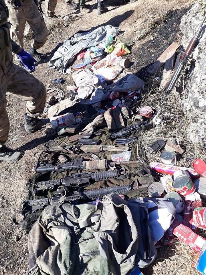 Teröristlerin sıkıştırıldığı mağarada yapılan aramada 4 uzun namlulu silah, el bombaları, telsiz ve bol miktarda yaşam malzemesi ele geçirilirken, teröristlerden İ.A.'nın, jandarmada verdiği ilk ifadesinde belirttiği yerlerde yapılan aramada ise RPG 7 roketatar, roketatar sevk fişeği, 50 fişek, 1 uzun namlulu silah, dürbün, hücum yelekleri, telsiz, batarya ve 50 metre uzunluğunda kablo bulundu.