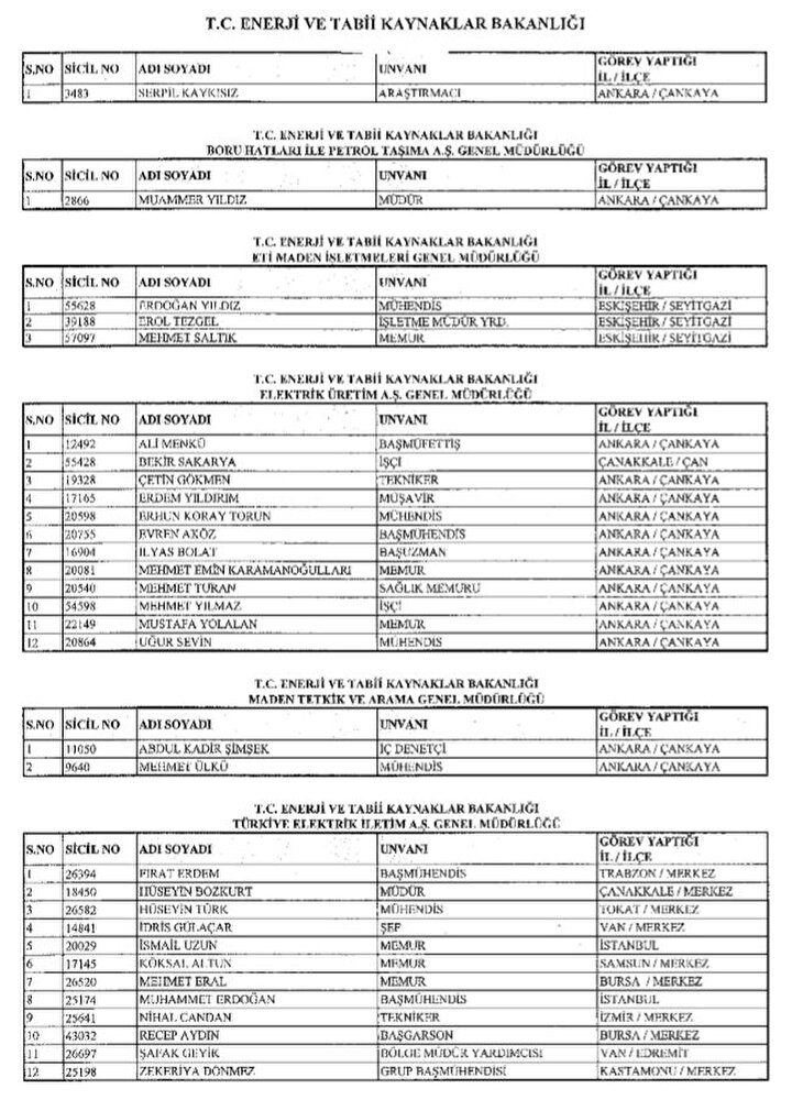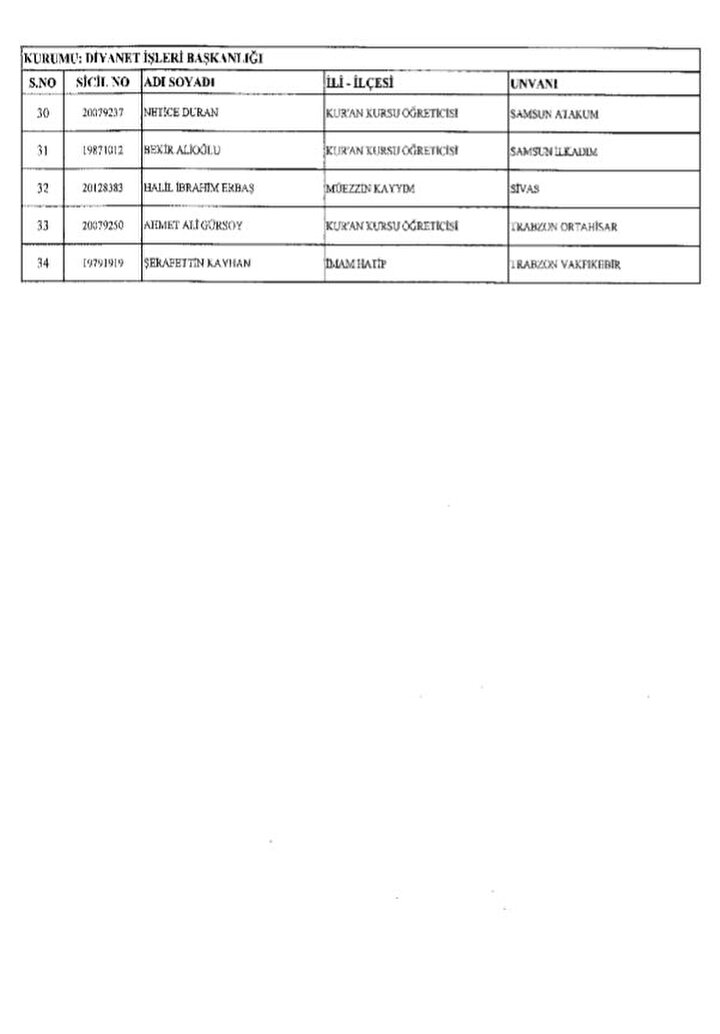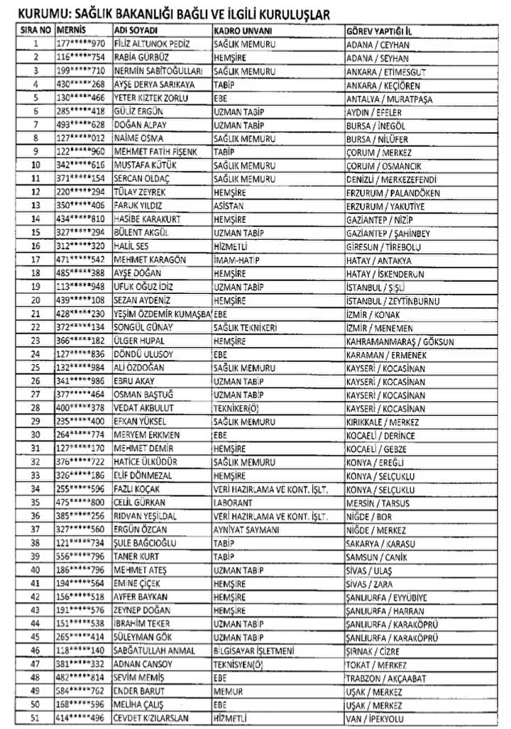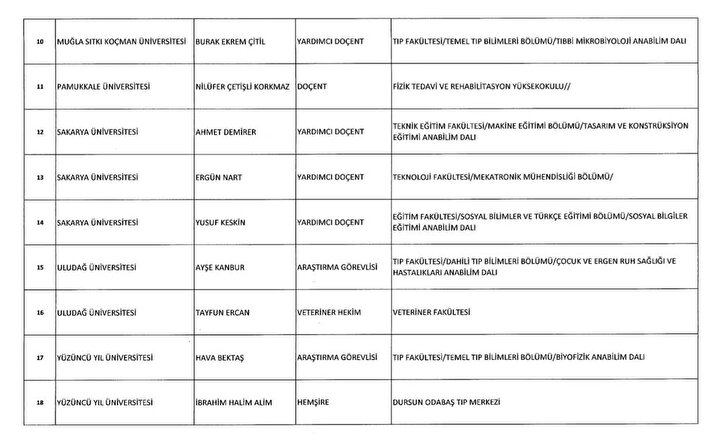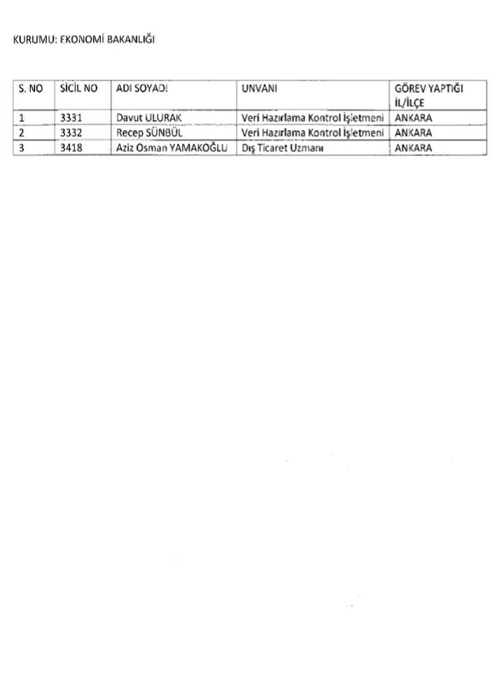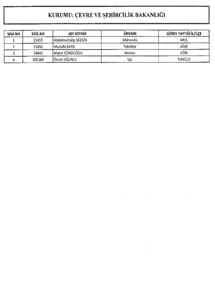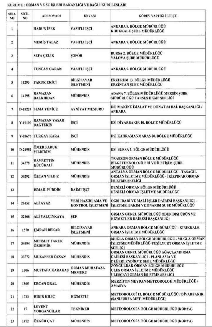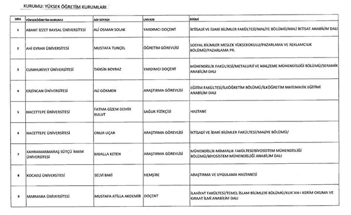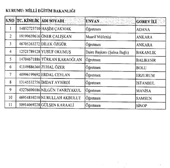 688 sayılı KHK ile göreve iade edilenlerin listesi