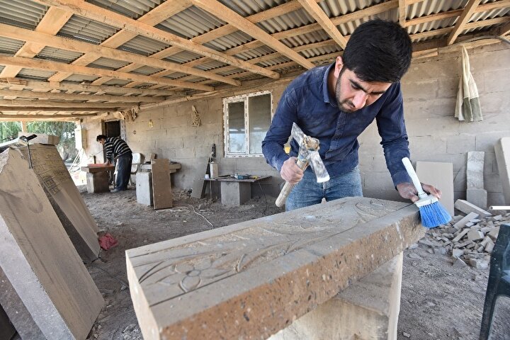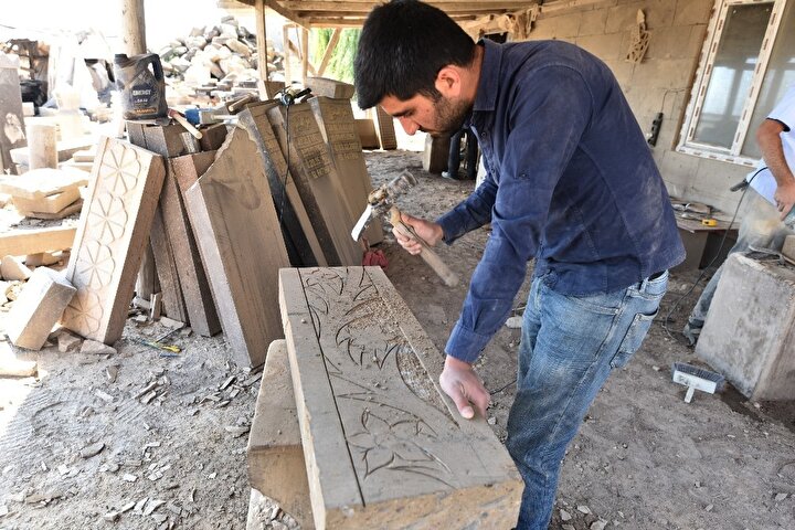 5 yıldır taş işlemeciliği yapan Mustafa Altıntaş da, “5 yıldır taş işlemeciliği yapıyoruz. Şu an bu taşlar Kırklar bölgesinde yerin altından çıkıyor. Oradan çıkarılan taşları getirip burada işliyoruz. Ondan sonra çeşme, minare, şömine, barbekü, mezar taşlarının işlemesini yapıyoruz. Yani istediğimiz deseni yapabiliyoruz. Geçimimizi bu işte sağlıyoruz” diye konuştu.
