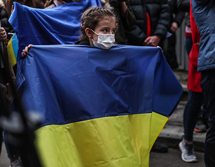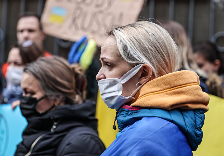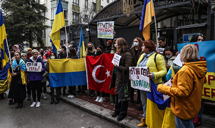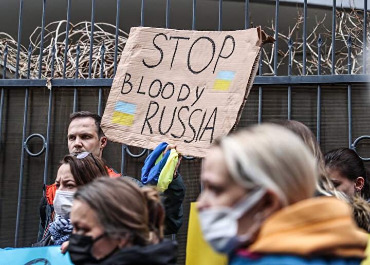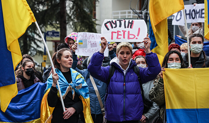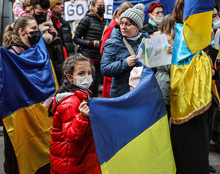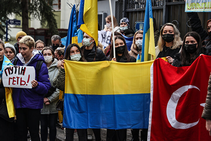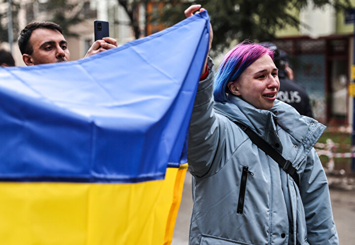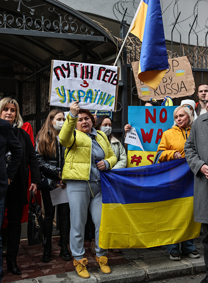 Ukrayna Derneği Başkanı Yuliya Biletska, eylemde yaptığı konuşmada, Rusya'ya yönelik protesto eylemleri için Valilik ve ilgili makamlarla görüşmeler yaptıklarını dile getirdi.