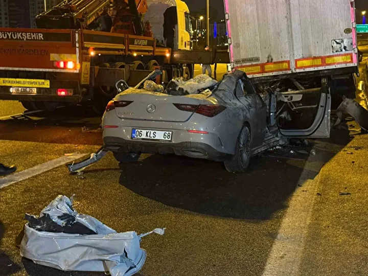 Ankara Çevreyolunda bir otomobil seyir halindeki bir tırın arkasına girdi, kazada 2 kişi öldü 1 kişi ise ağır yaralandı.