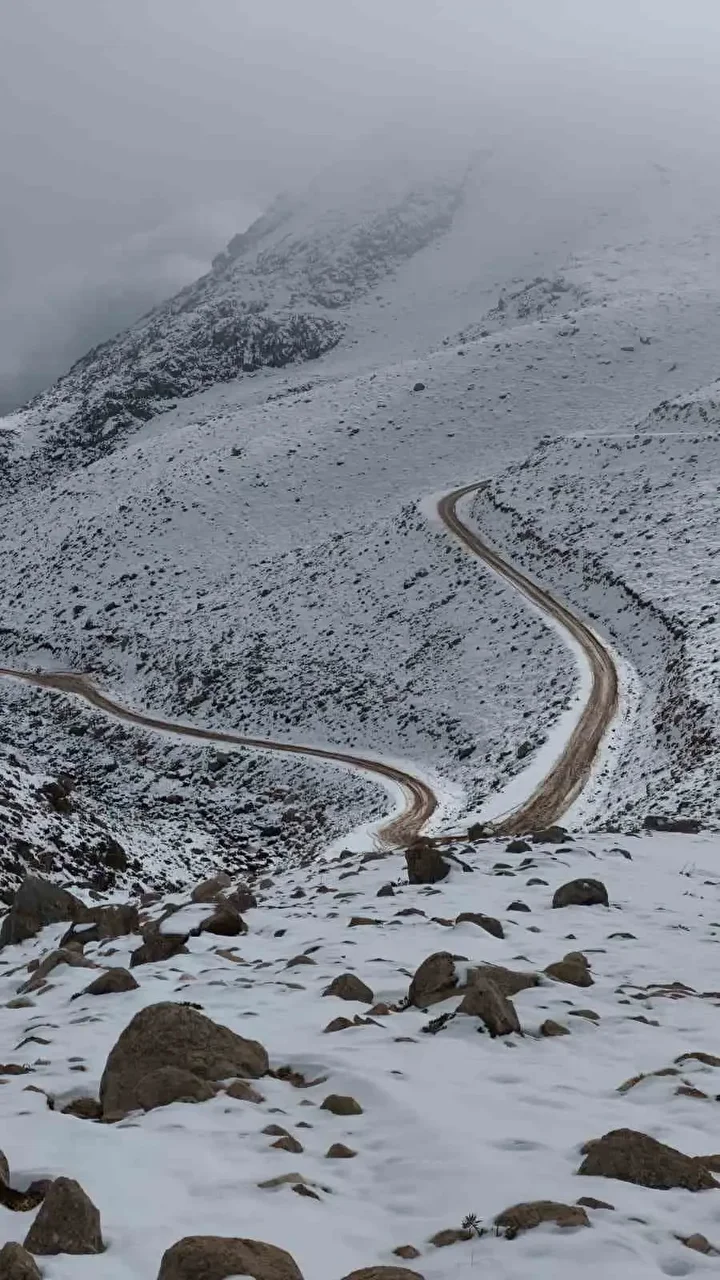 Antalya'nın Kaş ilçesinde soğuk havanın hakim olduğu yüksek rakımlı alanlar, etkili kar yağışıyla beyaza büründü.