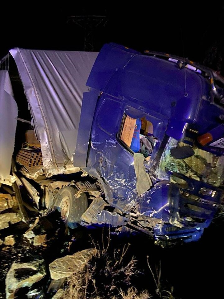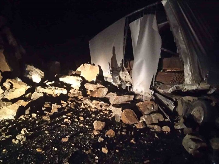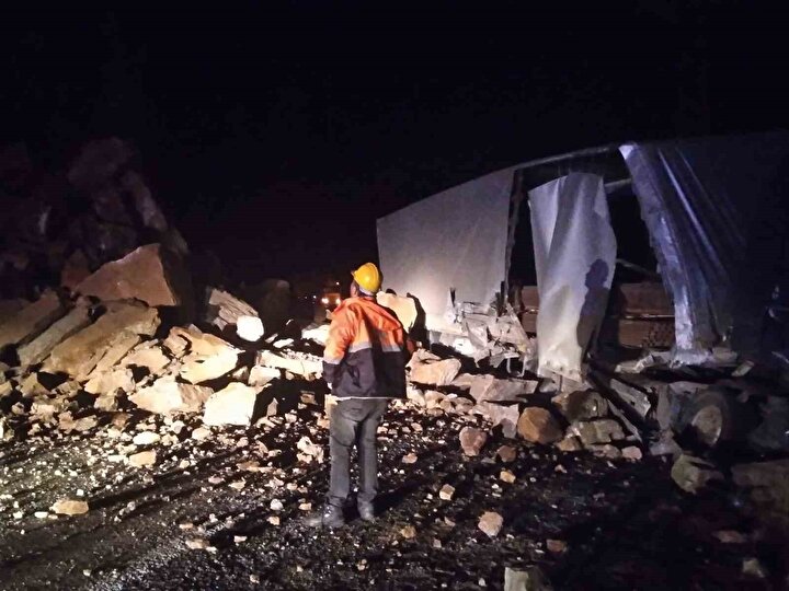 Heyelan sırasında, toprak ve kaya parçaları seyir halde olan Rahmi Ş. idaresindeki 61 K 15860 plakalı demir yüklü tıra isabet etti.